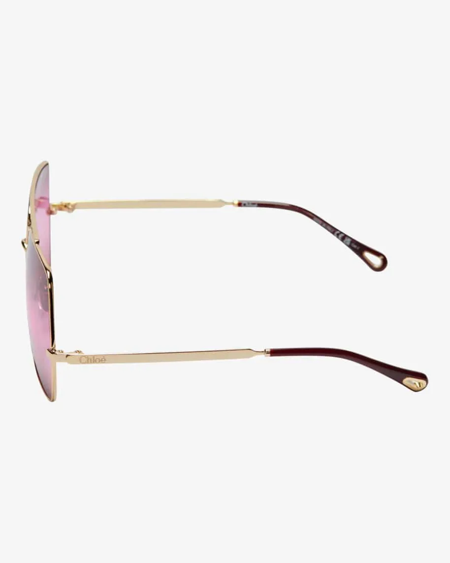 Sonnenbrille für Damen von Chloé Eyewear in Gold, Rosa und Dunkelrosa. Mitdiesem Modell präsentiert das Label einen modisch-eleganten Favoriten fürsonnige Tage, während Logo-Details das extravagante Gesamtbild gekonnt abrunden.