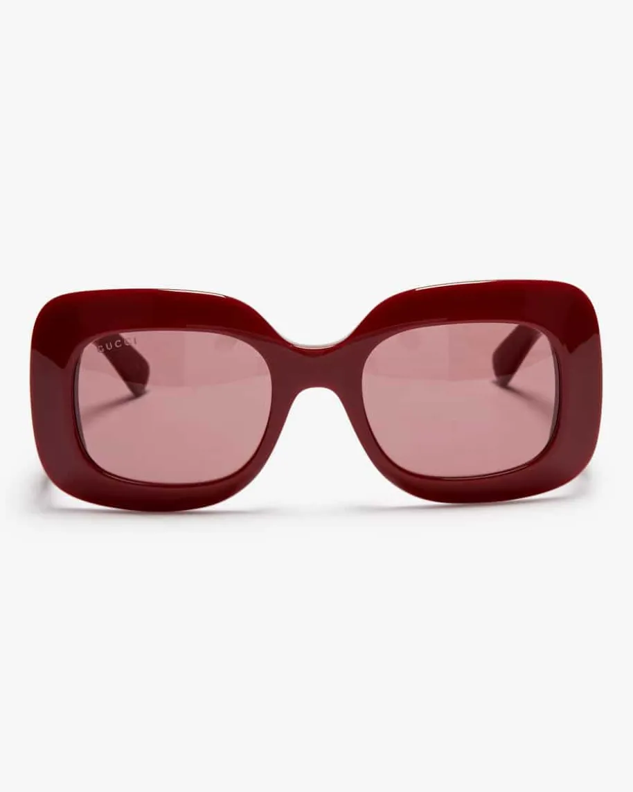 Sonnenbrille für Damen von Gucci Eyewear in Bordeaux. Dank der besonderenAufmachung und breiten Bügeln überzeugt das Modell als modischer Favorit,während die getönten Gläser ein sommerliches Accessoire kreieren.