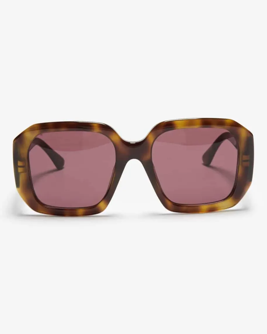 Sonnenbrille für Damen von Chloé Eyewear in Schwarz und Braun. Dieses Modellavanciert dank der getönten Gläser sowie dem breiten Bügel zum stilsicherenAccessoire für heiße Sommertage. Zugleich setzt die modische Horn-Optik sowiegoldene Details ein besonderes Highlight.