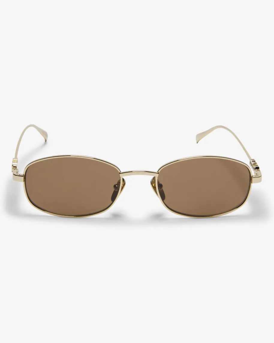 Sonnenbrille für Damen von Gucci Eyewear in Gold und Braun. Dank eckiger Formund schmaler, abgerundeter Silhouette avanciert das Modell mit goldfarbenemMetallrahmen zum modischen Begleiter an sonnigen Tagen. Die seitlichen Logo-Elemente verleihen dabei den letzten Schliff.
