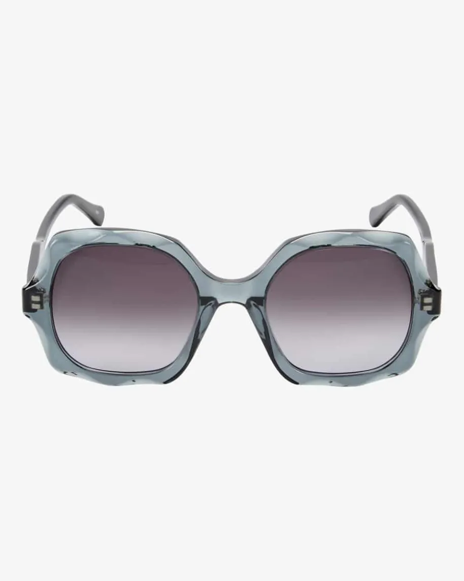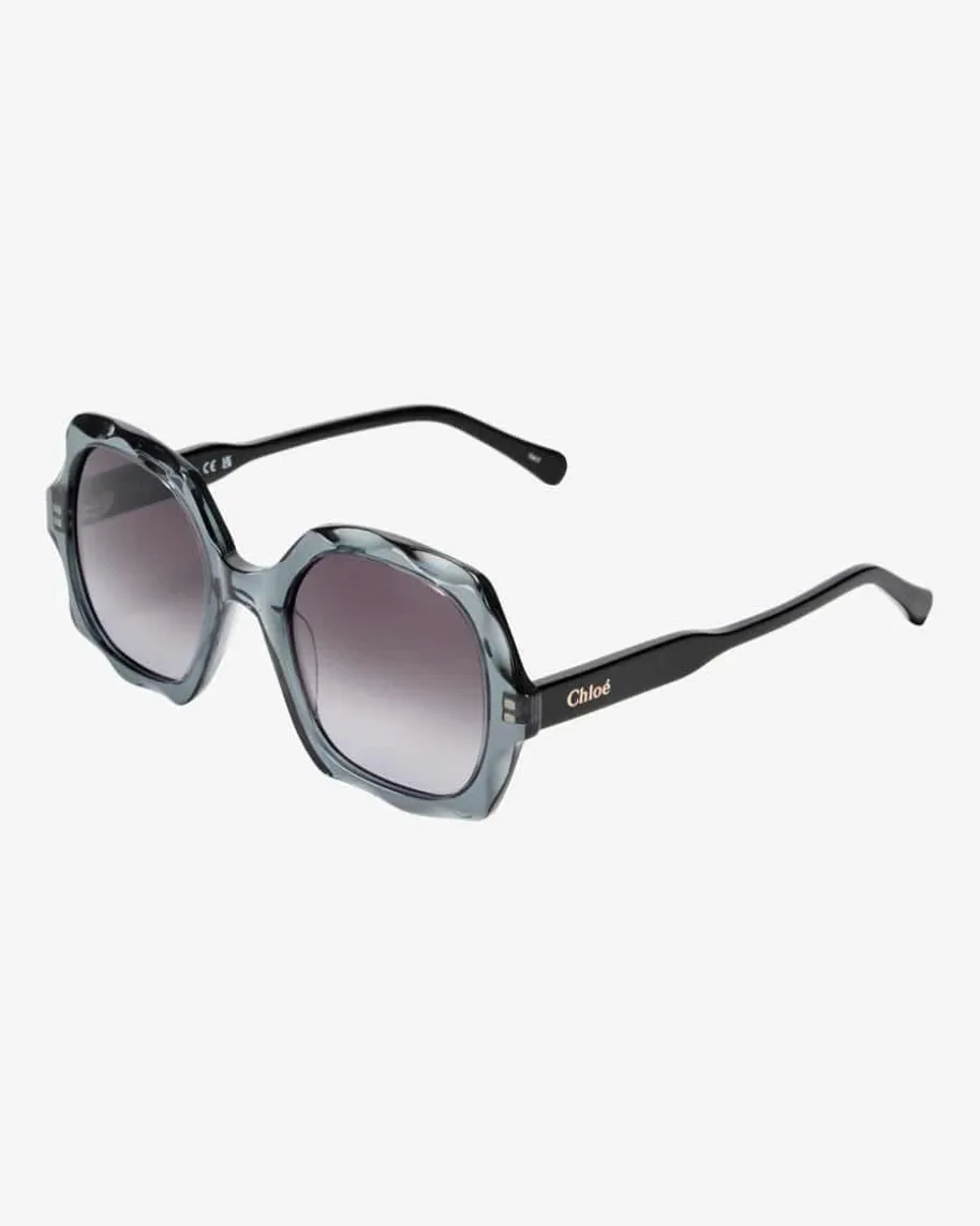 Sonnenbrille für Damen von Chloé Eyewear in Blaugrau, Schwarz und Dunkelgrau.Dieses Modell avanciert dank der markanten Gläser mit semitransparentem Rahmenim Wellen-Design zum stilsicheren Accessoire für sonnige Tage.