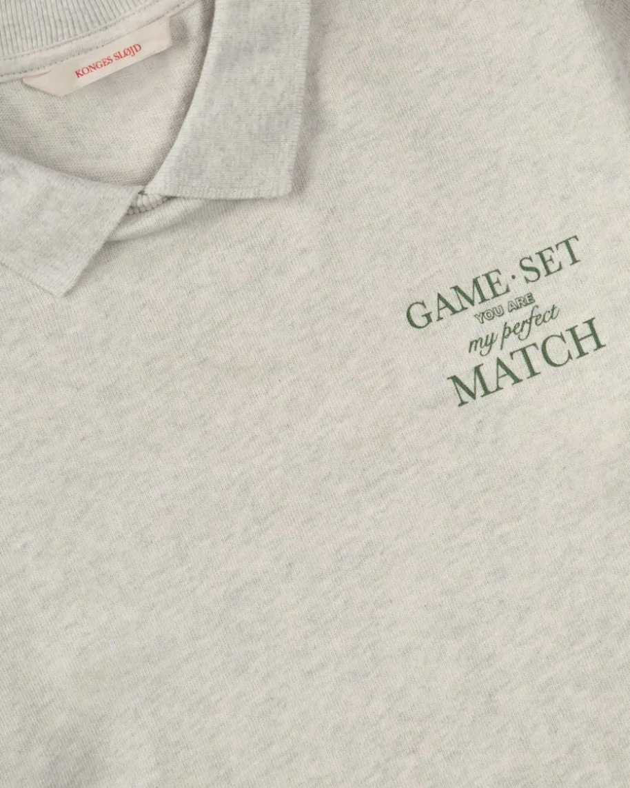 Spotty Sweatshirt für Jungen von Konges Slojd in Hellgrau und Dunkelgrün.Dänisches Design für Babys & Kinder – nachhaltig, stylisch, durchdacht. Auchdieses melierte Modell begeistert mit GOTS zertifiziertem Baumwoll-Sweat,während sportive Details und der Tennis-Print den Style harmonisch abrunden.