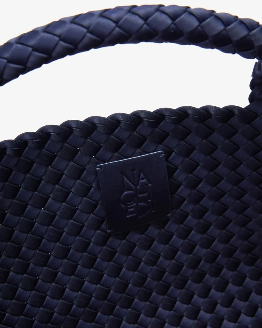 St. Barths Large Tote Handtasche für Damen von Naghedi in Navy. Dieses textileModell präsentiert sich in changierender Optik und edler Flecht-Aufmachung,während viel Stauraum geboten wird. Die separate Clutch ist mit einemReißverschluss versehen und bietet Platz für Ihre Kosmetikartikel oder andereKleinigkeiten.
