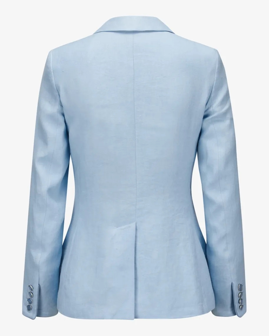 St. Gallen Leinen-Trachtenblazer für Damen von LODENFREY München 1842 inHellblau. Das taillierte Modell überzeugt dank fein strukturierter Leinen-Qualität sowohl haptisch als auch optisch, während die changierenden Knöpfestilvolle Akzente setzen und so einen femininen Begleiter für moderne Trachten-Looks kreieren.