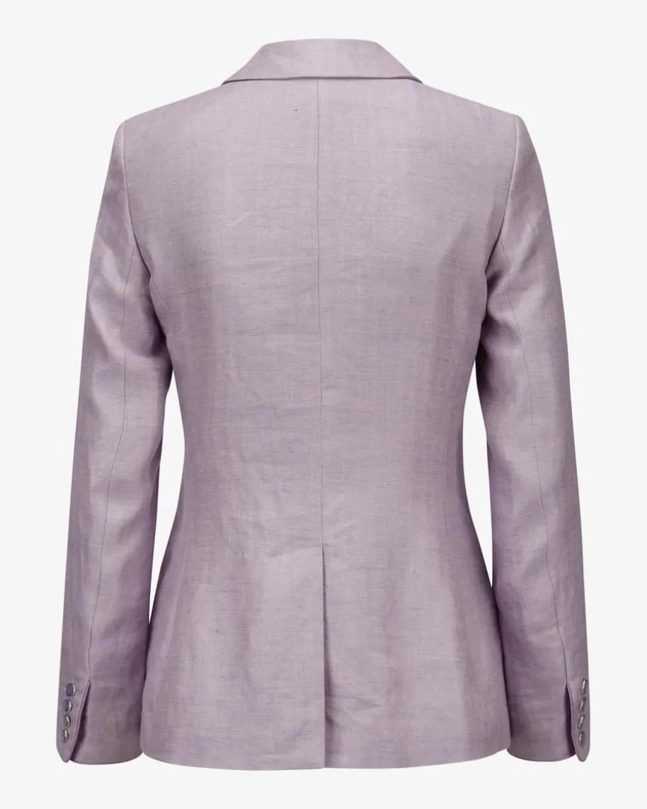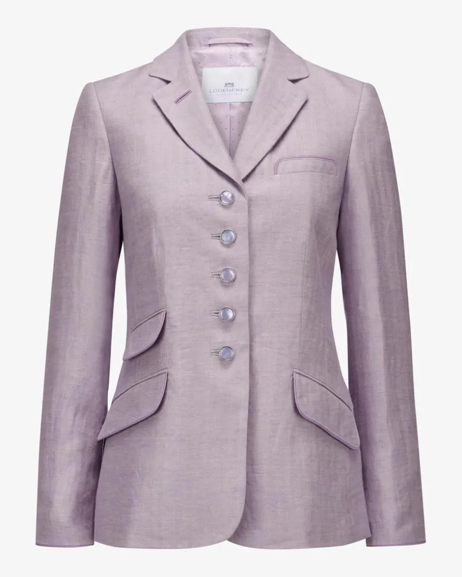 St. Gallen Leinen-Trachtenblazer für Damen von LODENFREY München 1842 inFlieder. Das taillierte Modell überzeugt dank fein strukturierter Leinen-Qualität sowohl haptisch als auch optisch, während die changierenden Knöpfestilvolle Akzente setzen und so einen femininen Begleiter für moderne Trachten-Looks kreieren.