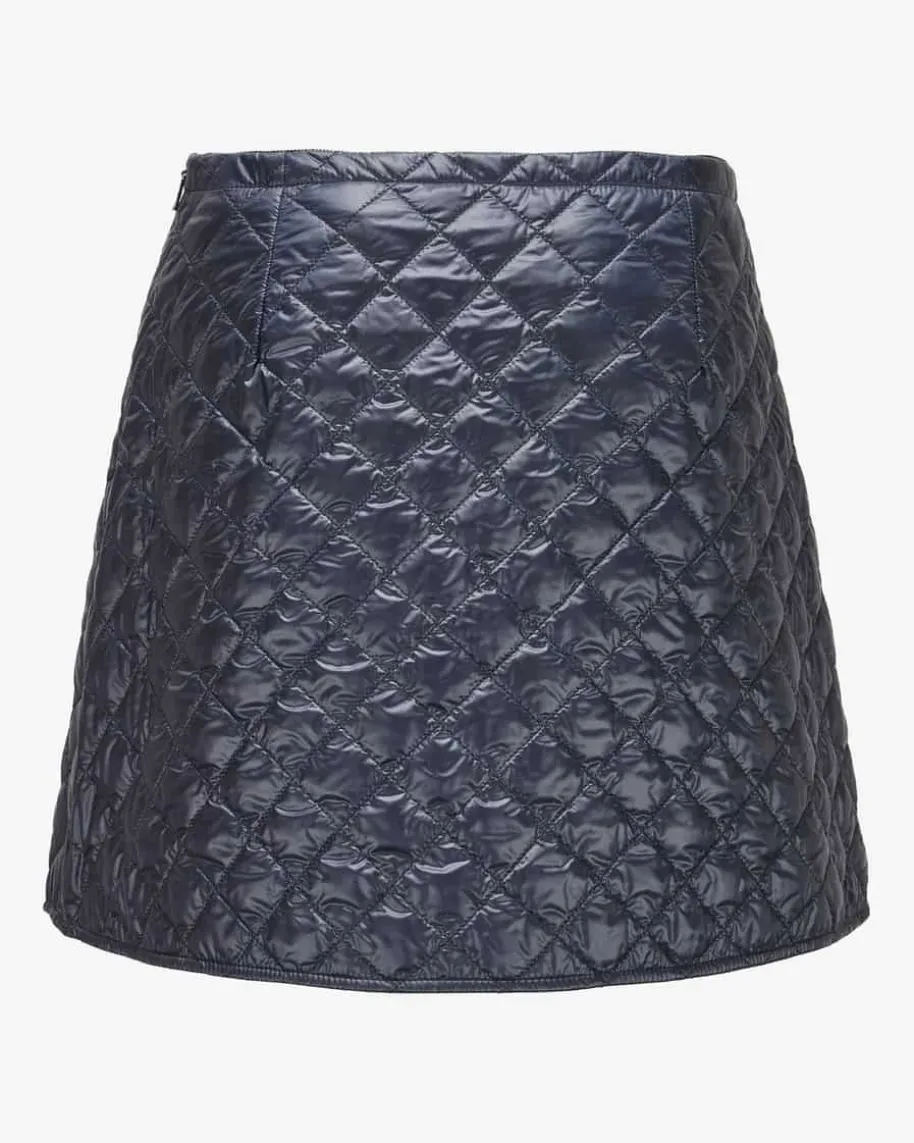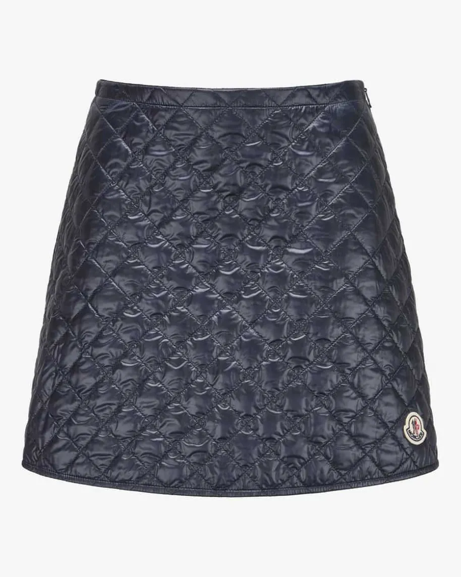Stepp-Minirock für Damen von Moncler in Navy. Das Modell begeistert mitfemininen Mountain-Vibes und sportiver Outdoor-Ästhetik. Die leichte Wattierungund die labeltypische Logo-Applikation rundet den gesteppten Style gekonnt ab.