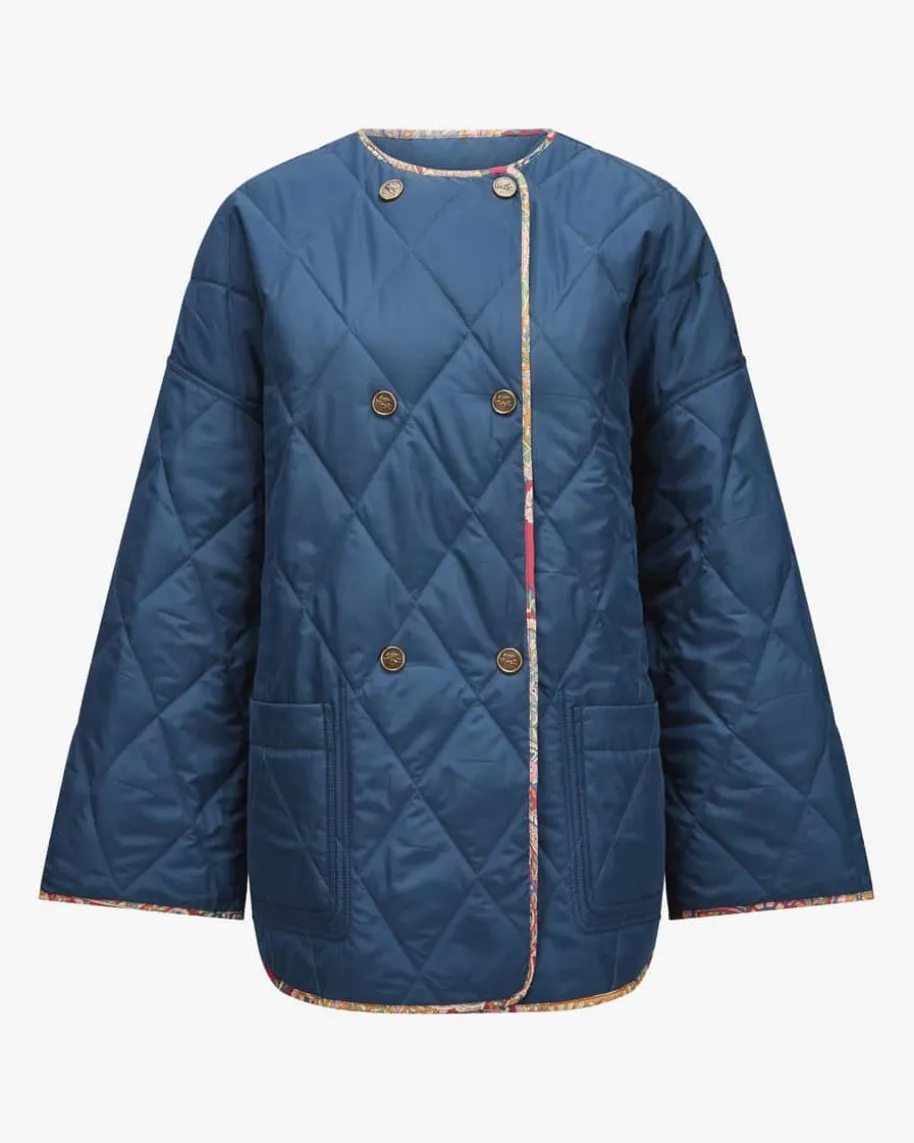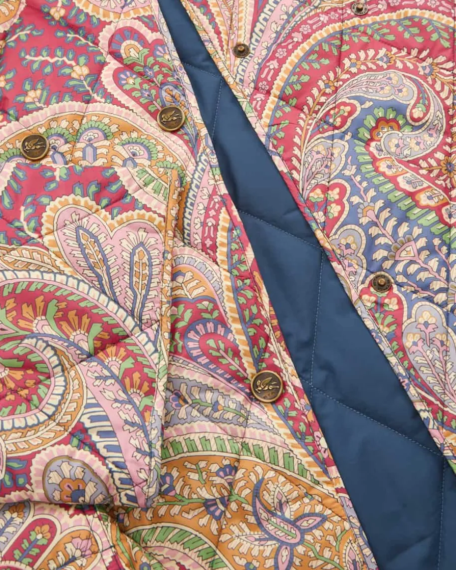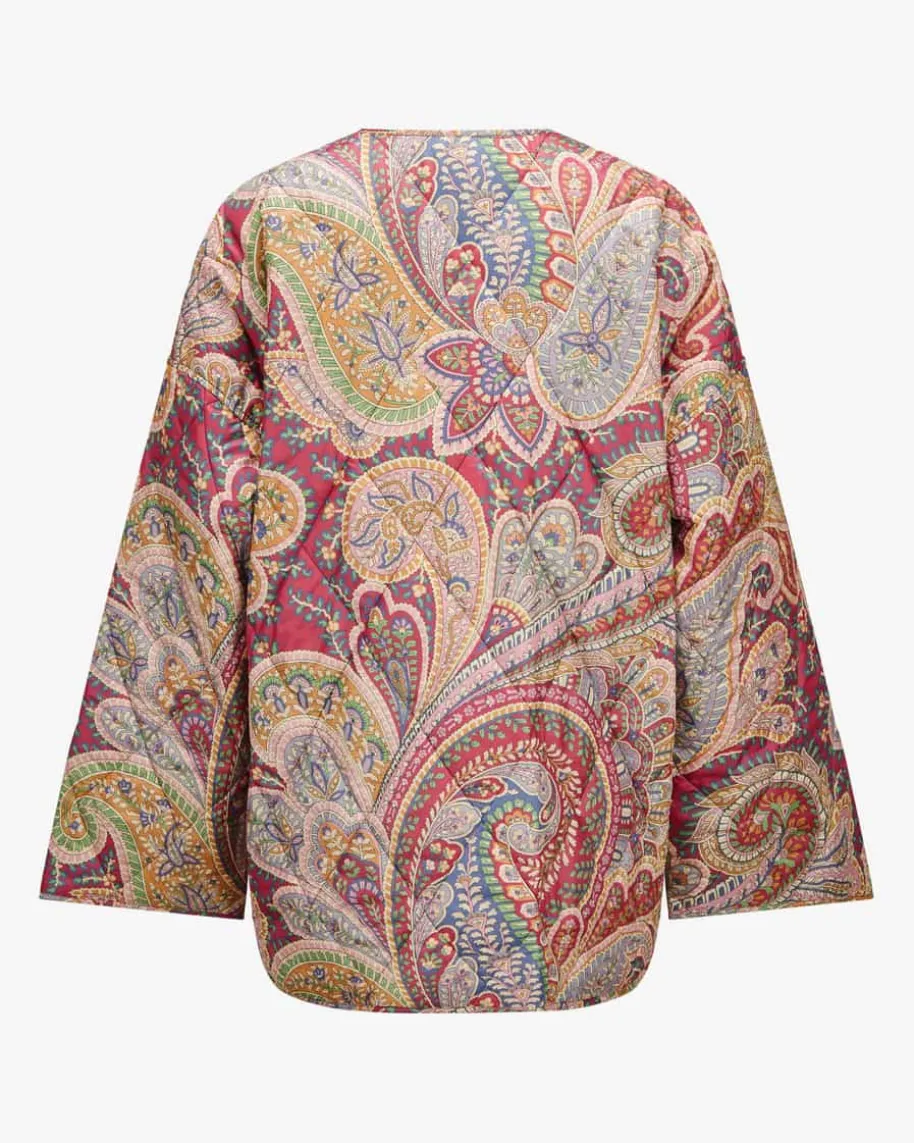 Steppjacke für Damen von Etro in Bordeaux und Bunt. Das Modell überzeugt dankdem weiten Schnitt sowie der doppelreihigen Logo-Knopfleiste als modernerJacken-Begleiter mit Kimono-Charakter, welcher durch das leichte Rautenstepp-Design mit floralem Paisley-Muster zu einem besonderen Übergangs-Favoritenavanciert.