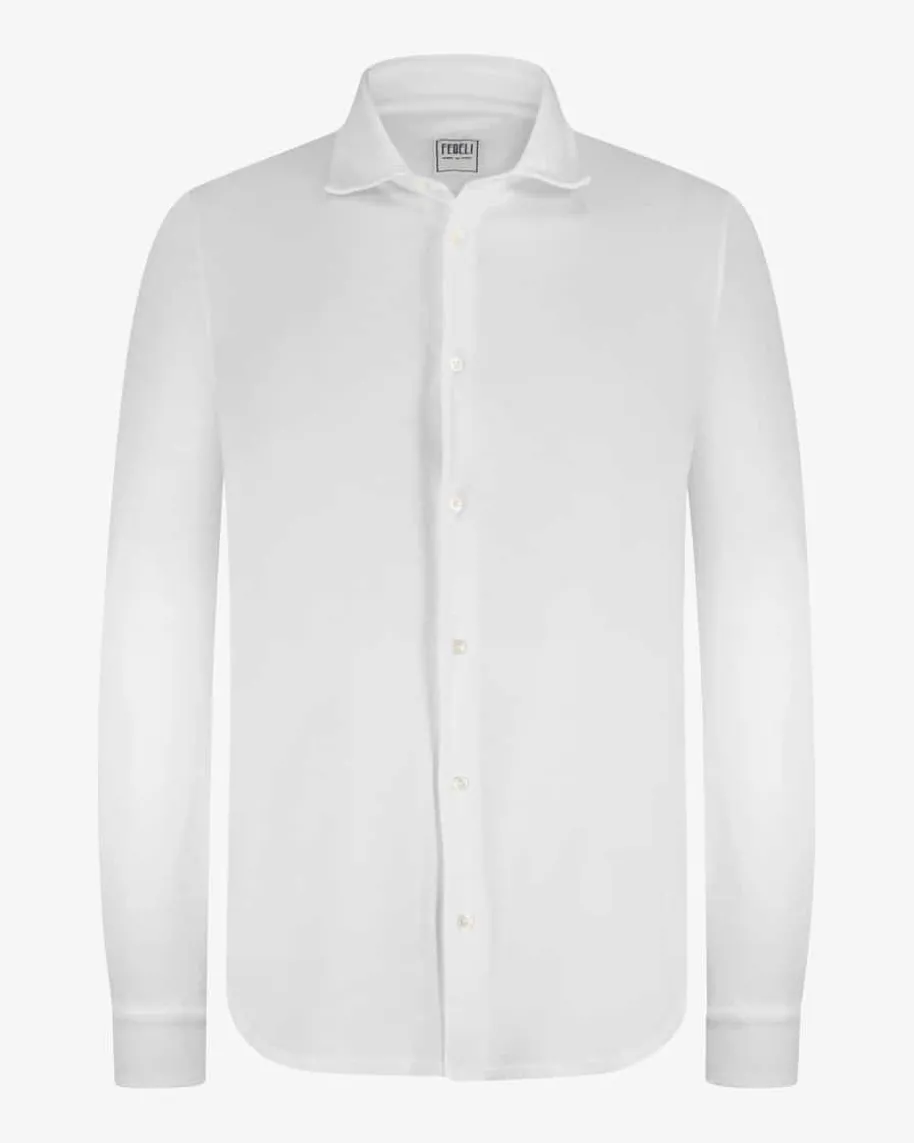 Steve ML Jerseyhemd für Herren von Fedeli in Weiß. Zeitlosund leger zugleichpräsentiert sich das Modell mit tailliertem Schnitt undhochwertiger Piqué-Qualität,während perlmuttfarbene Knöpfe den letzten Schliffverleihen. .