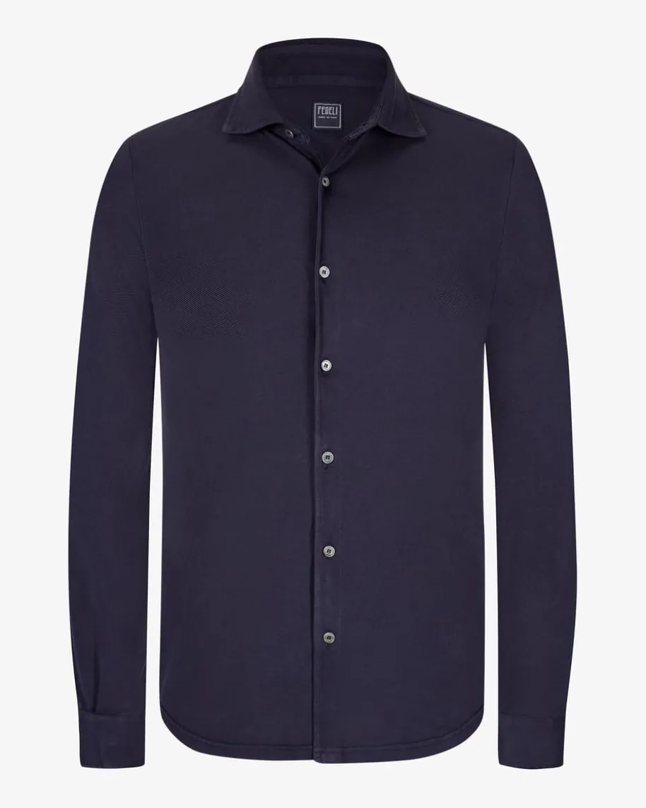 Steve ML Jerseyhemd für Herren von Fedeli in Dunkelblau.Zeitlos und legerzugleich präsentiert sich das Modell mit tailliertem Schnittund hochwertiger Piqué-Qualität, während perlmuttfarbene Knöpfe den letzten Schliffverleihen.