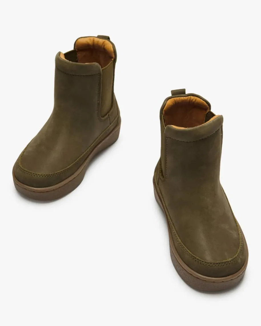 Stiefel für Kinder von Donsje in Khaki. Dieses Modell überzeugt mit zeitlosemDesign und avanciert so zum vielseitigen Favoriten für Ihren Liebling. Dieelastischen Einsätze am Schaft erleichtert zudem das An- und Ausziehen.