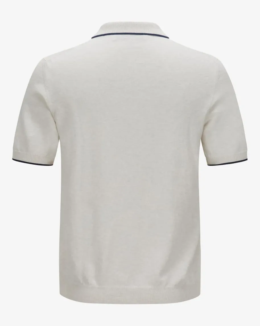 Strick-Poloshirt für Herren von Gran Sasso in Sand und Navy. Das Modell ausweicher Baumwolle präsentiert sich dank der Strick-Aufmachung als modischerFavorit mit angenehmer Haptik. Zugleich setzen Kontraststreifen gekonntAkzente..