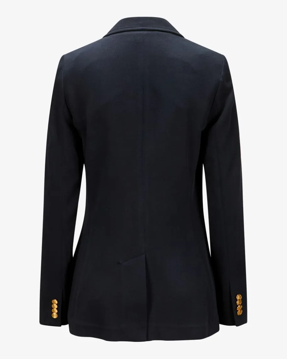 Strickblazer für Damen von Polo Ralph Lauren in Navy. Das Modell aus angenehmemBaumwoll-Mix präsentiert sich dank goldfarbener Logo-Stickerei sowie denWappenknöpfen in stilvoller Aufmachung, welche durch die Strick-Verarbeitungeine legere Note erhält.