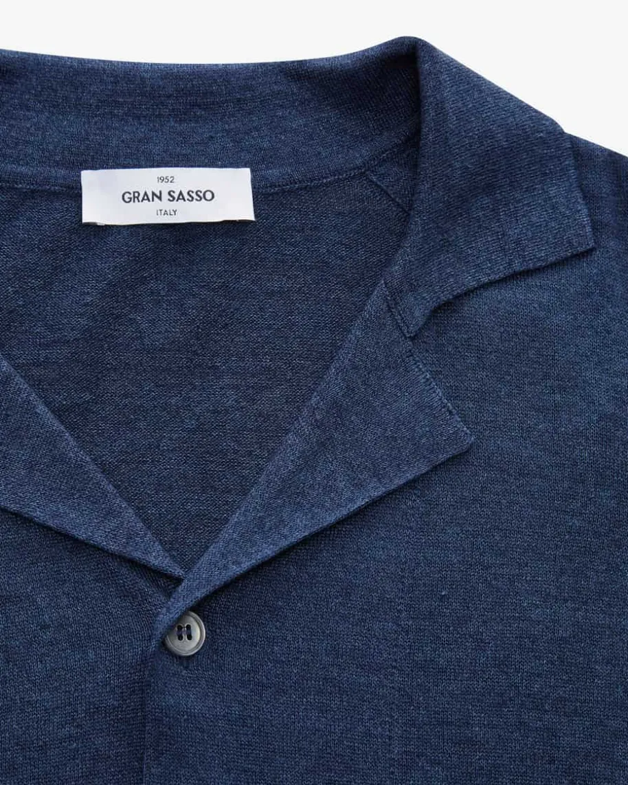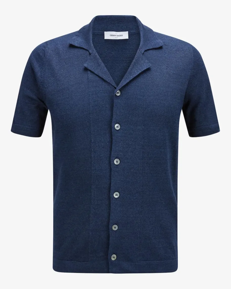 Strickhemd für Herren von Gran Sasso in Navy. Das Kurzarm-Modell zeichnet sichdurch die hochwertige Leinen-Baumwoll-Verarbeitung aus, während die melierteAufmachung den angesagten Bowling-Look harmonisch ergänzt.