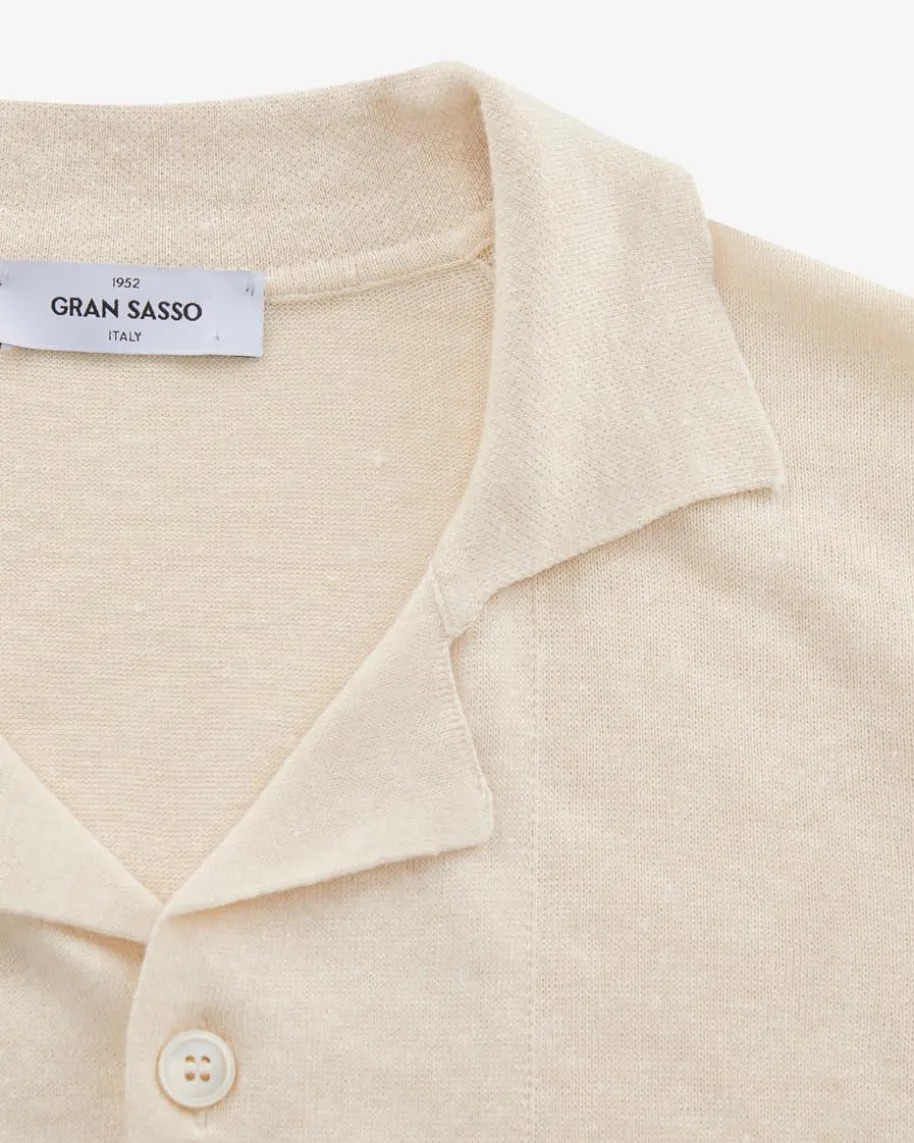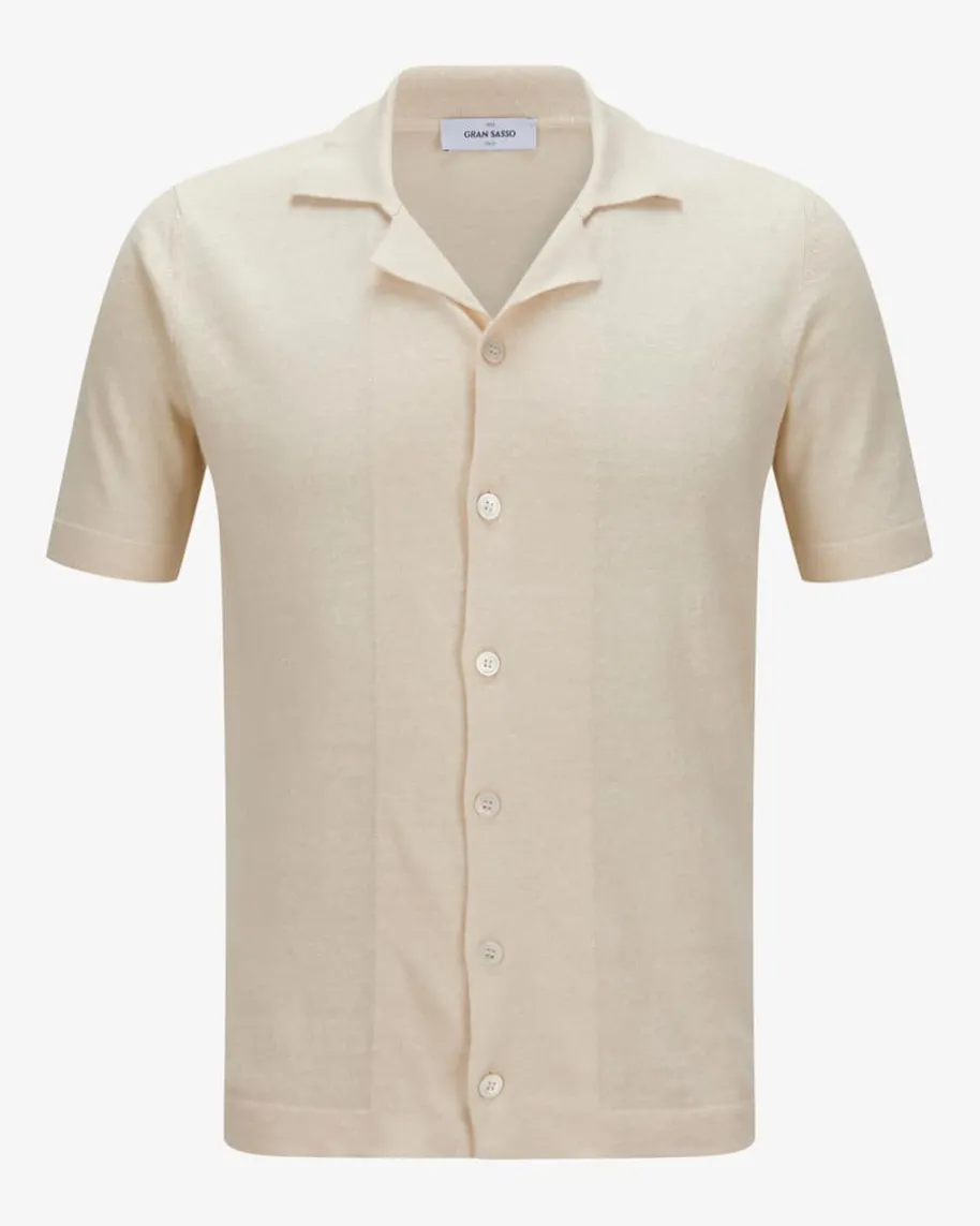 Strickhemd für Herren von Gran Sasso in Sand. Das Kurzarm-Modell zeichnet sichdurch die hochwertige Leinen-Baumwoll-Verarbeitung aus, während die melierteAufmachung den angesagten Bowling-Look harmonisch ergänzt.