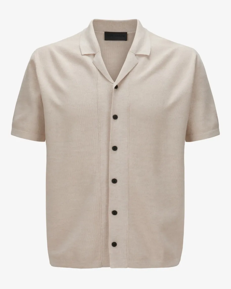 Strickhemd für Herren von Iris von Arnim in Sand. Das Modell aus einemangenehmen Baumwoll-Seiden-Mix präsentiert sich dank der Piqué-Aufmachung alsmodischer Favorit mit angenehmer Haptik. Zugleich setzen klassische Detailsgekonnt Akzente.