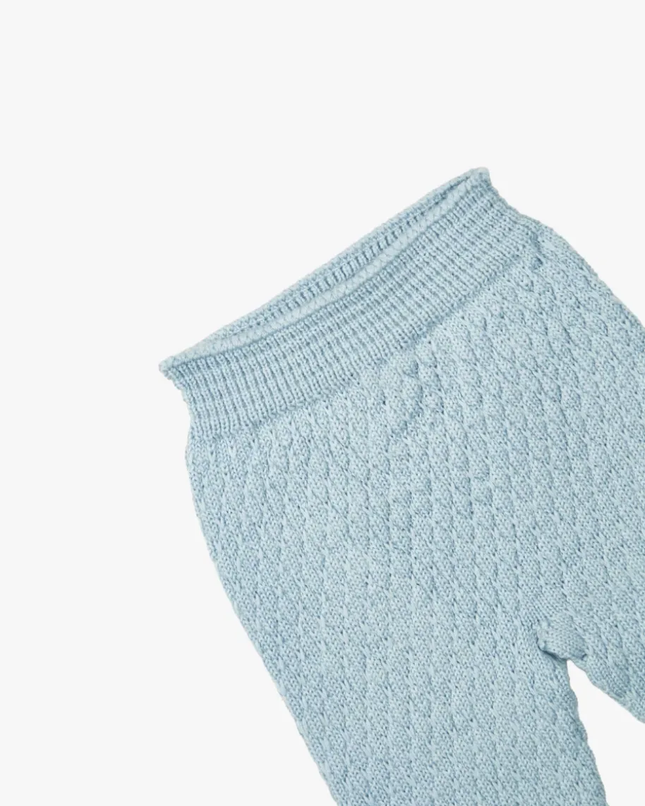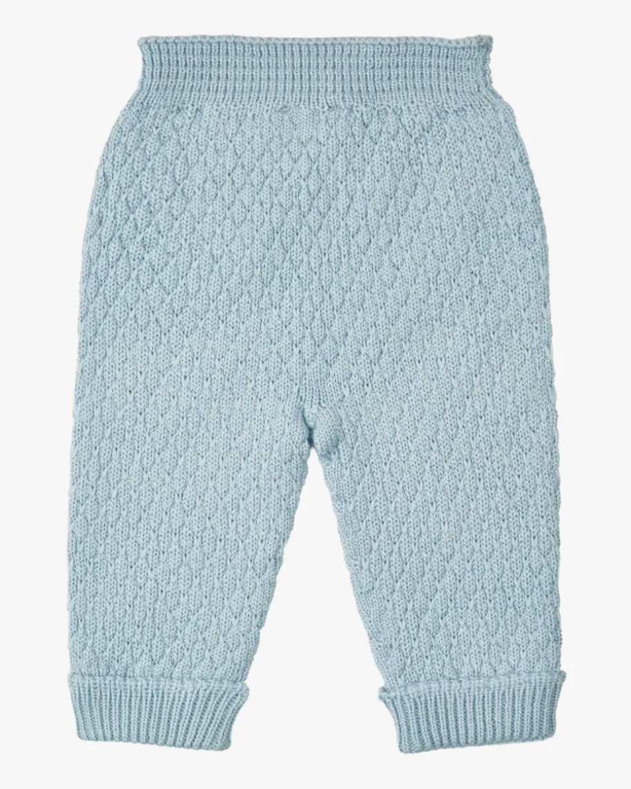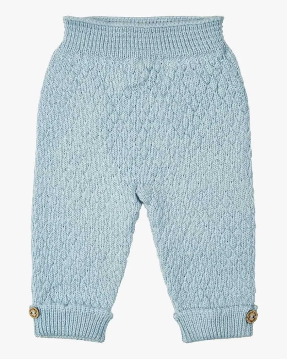 Strickhose für Babys von Wedoble in Hellblau. Das Modell punktet mit angenehmerMerinowoll-Qualität, die Ihrem Liebling einen hohen Tragekomfort bietet. Dasfeine Waffelstrickmuster und modische Rippstrick-Details runden den niedlichenLook harmonisch ab.