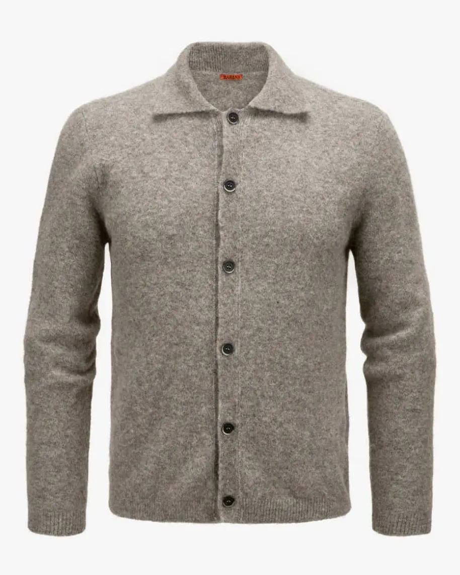 Strickjacke für Herren von Barena in Taupe. Während der Alpakawoll-Mix einebesondere Strick-Haptik kreiert, schafft das handgefertigte Design im Hemd-Lookeinen hochwertigen Casual-Begleiter für moderne Outfits.