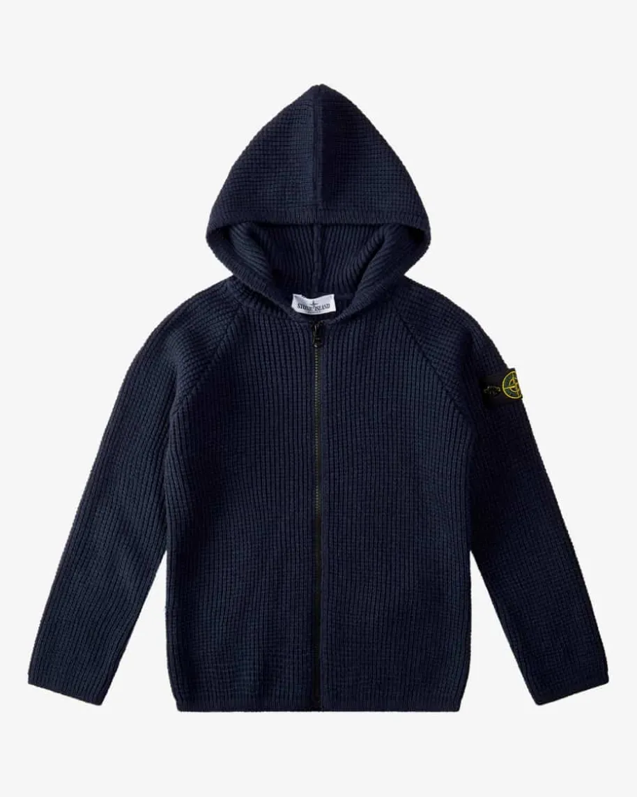 Strickjacke für Jungen von Stone Island Junior in Navy. Die Designermarkeerlangte nach ihrer Gründung 1982 schnell Kultstatus und zählt inzwischen zu denabsoluten Trendmarken. Das Modell überzeugt mit angenehmem Schurwoll-Cashmere-Mix in strukturierter Waffelstrick-Optik, während die charakteristische Logo-Plakette den sportiven Look gekonnt abrundet.