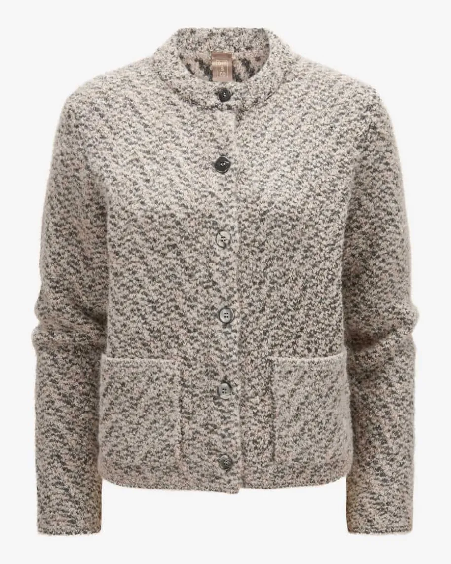 Strickjacke für Damen von OFF & CO in Beige und Grau. Dank der Verwendung vonhochwertigem Woll-Mix verspricht das Modell ein weiches Tragegefühl, während dasBicolor Bouclé-Strickdesign den Style modisch in Szene setzt und zugleich einraffiniertes, zweifaches Muster kreiert.