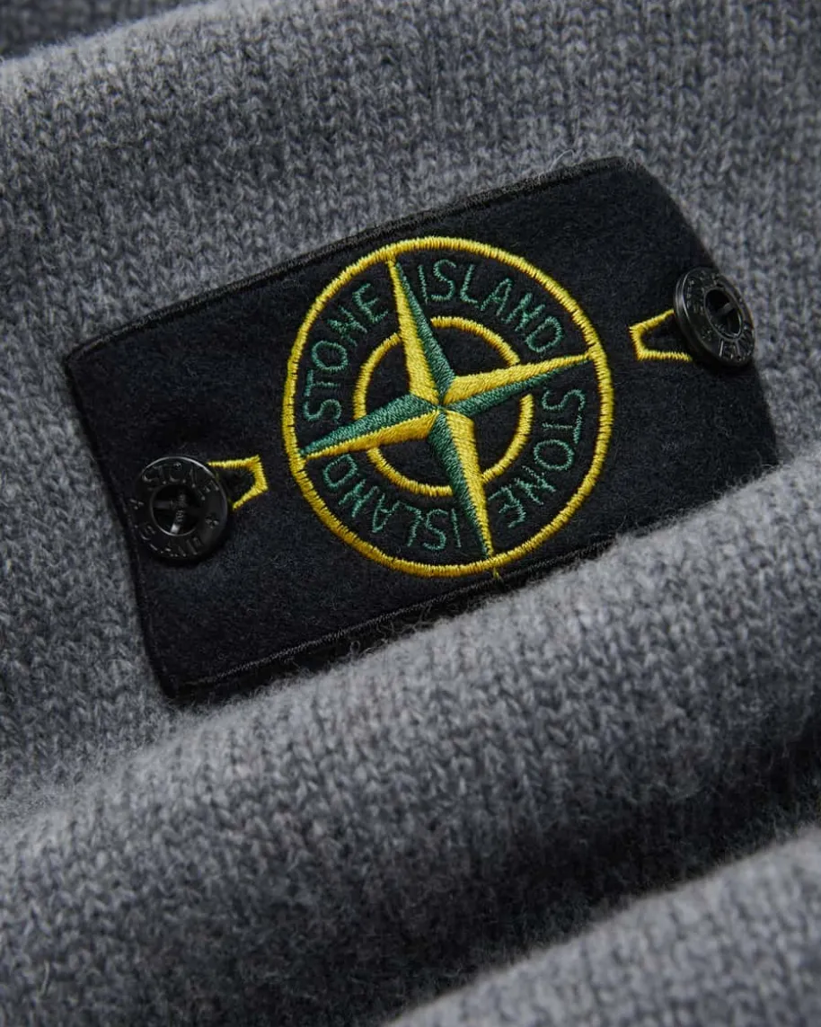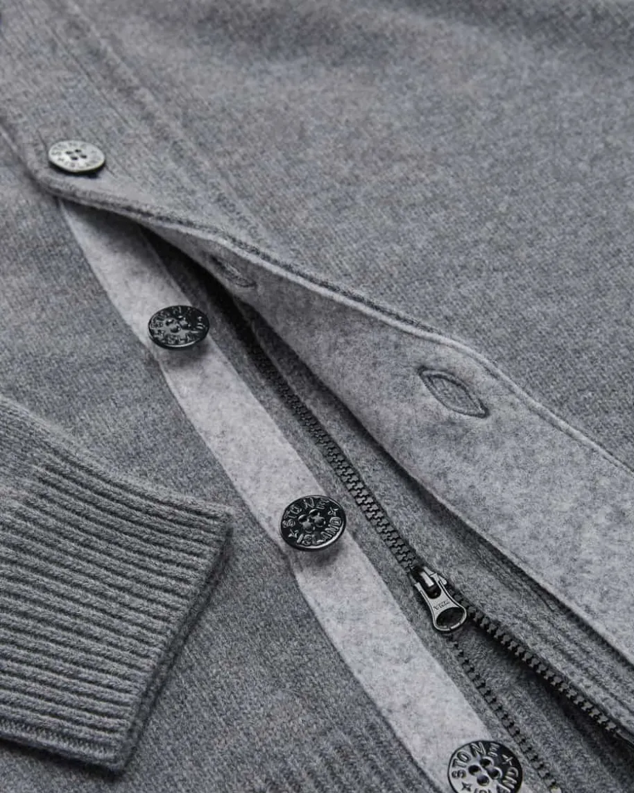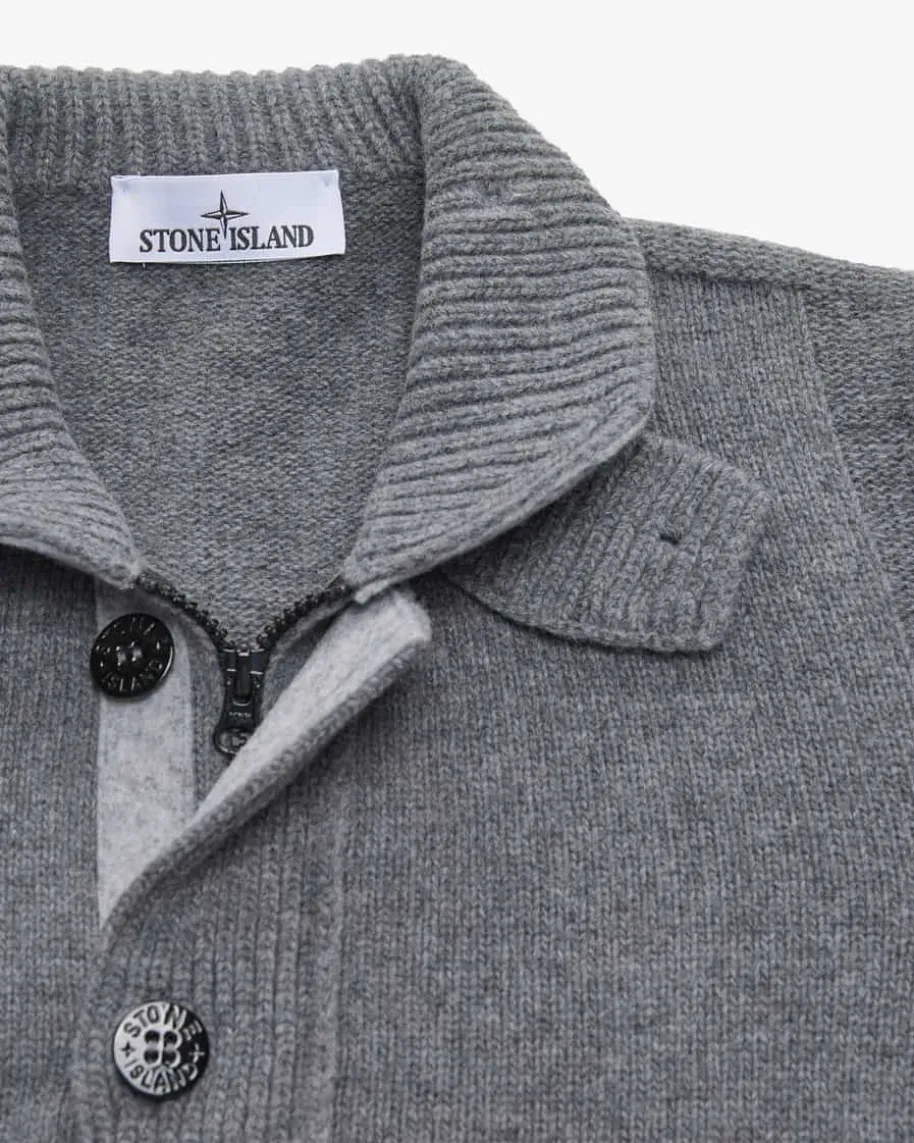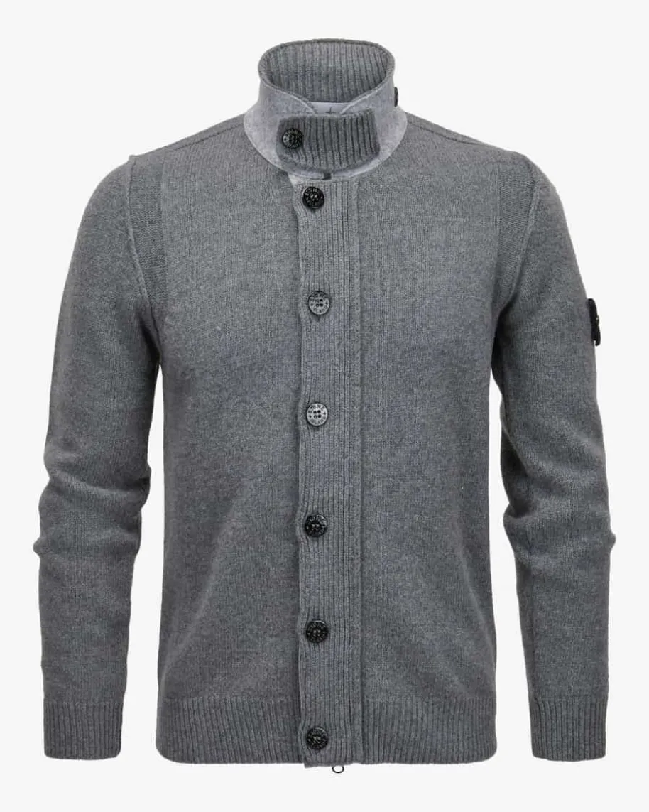 Strickjacke für Herren von Stone Island in Grau. Während das klassische Strick-Design mit hohem Stehkragen und Filz-Besatz zusammen mit dem doppeltenVerschluss einen maskulinen Look kreiert, rundet die labeltypische Logo-Plaketteam Ärmel das Gesamtbild gekonnt ab.