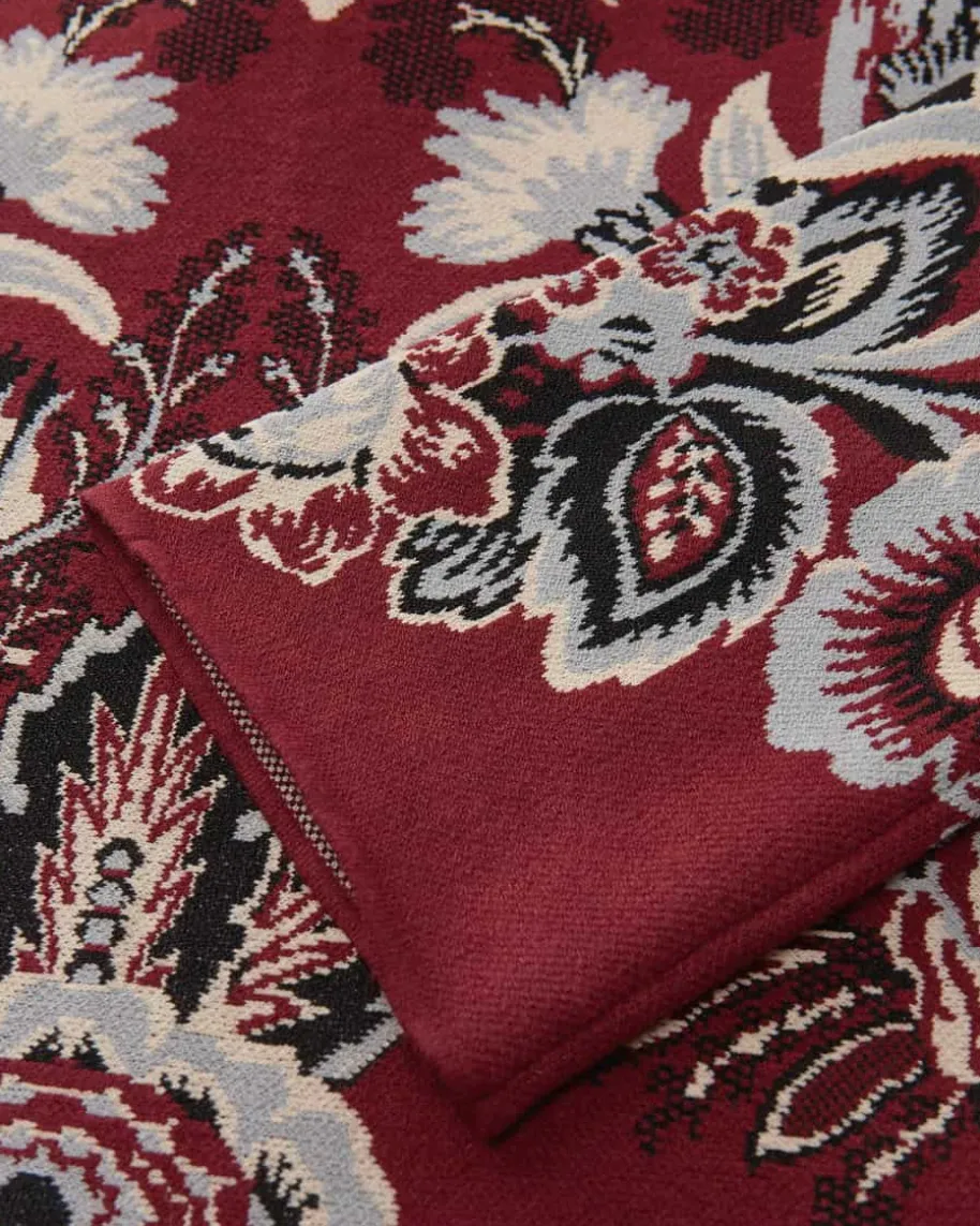 Strickkleid für Damen von Etro in Bordeaux, Blaugrau und Schwarz. Während dieausgestellte Passform sowie elastische Strick-Qualität einen femininen Schwungkreiert und hohen Tragekomfort verspricht, begeistert das Modell zudem durch dasflorale Jacquard-Design mit romantischem Touch.