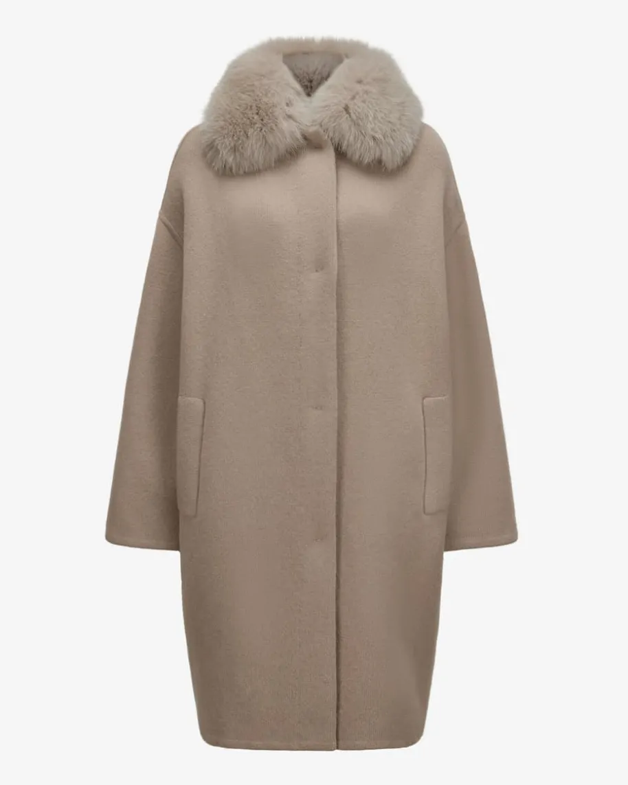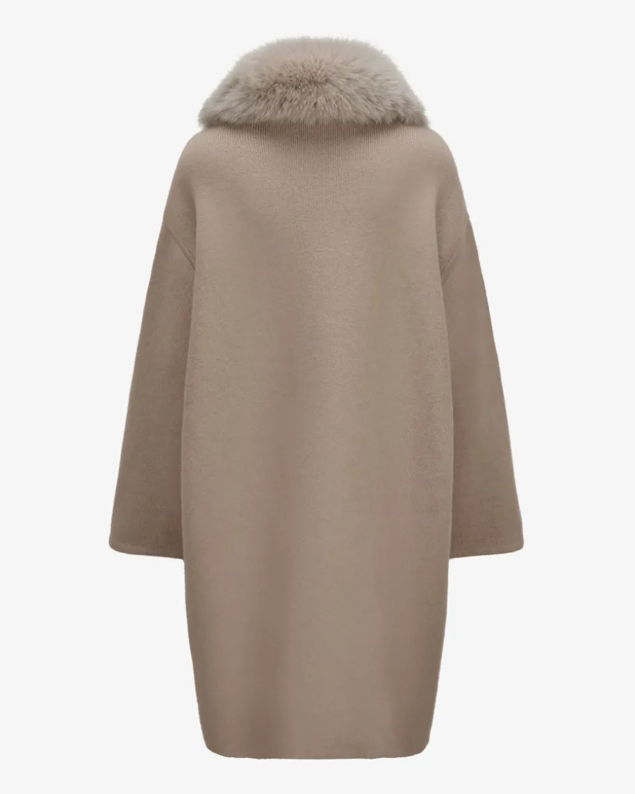 Strickmantel für Damen von Giovi in Taupe. Das Modell zeichnet sich durch dieVerwendung von hochwertiger Merinowolle aus, während der Pelz-Besatz optischsowie haptisch punktet. Zugleich verleiht die Oversize-Passform einen modischenCharakter.