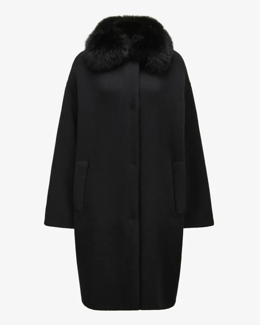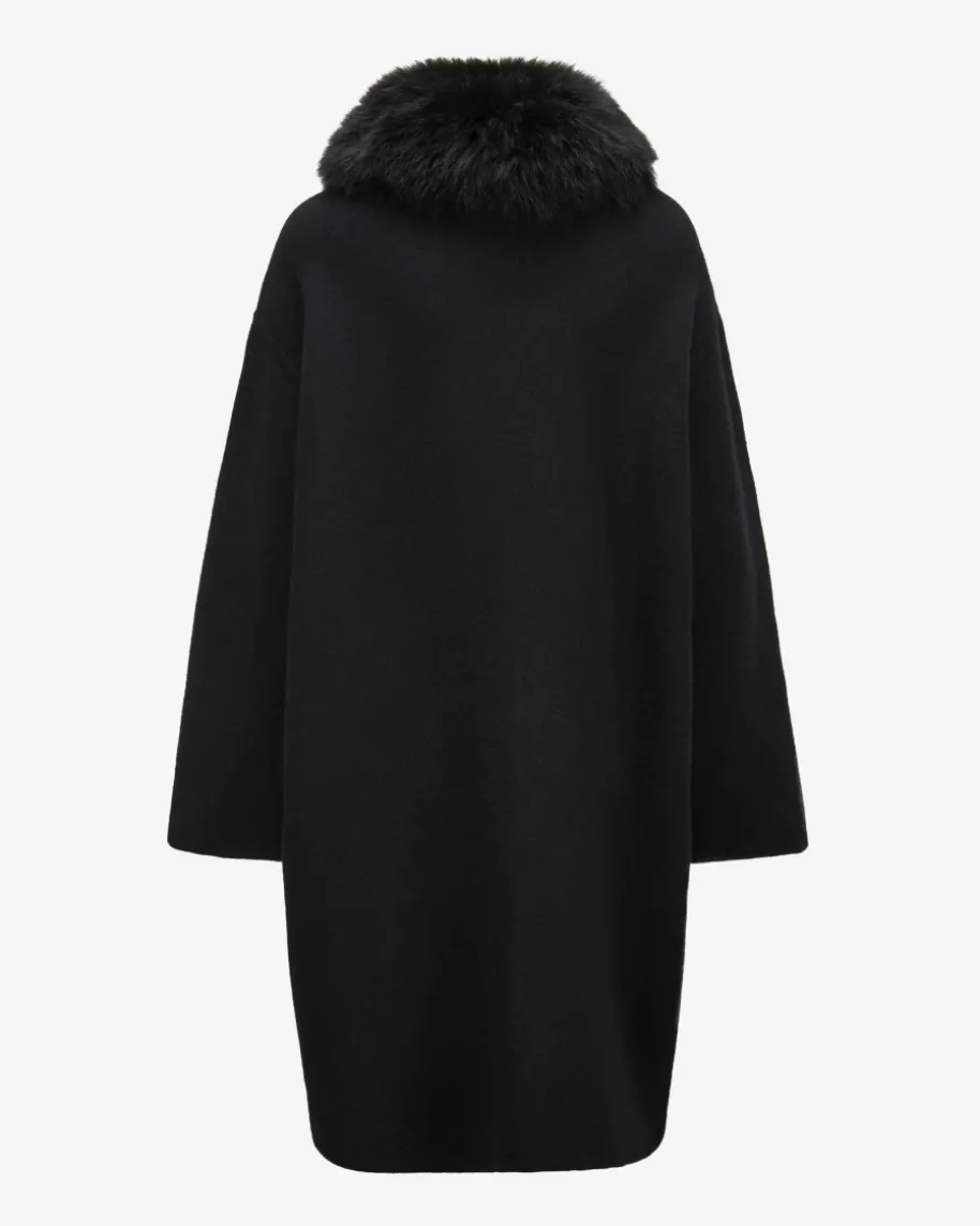 Strickmantel für Damen von Giovi in Schwarz. Das Modell zeichnet sich durch dieVerwendung von hochwertiger Merinowolle aus, während der Pelz-Besatz optischsowie haptisch punktet. Zugleich verleiht die Oversize-Passform einen modischenCharakter.