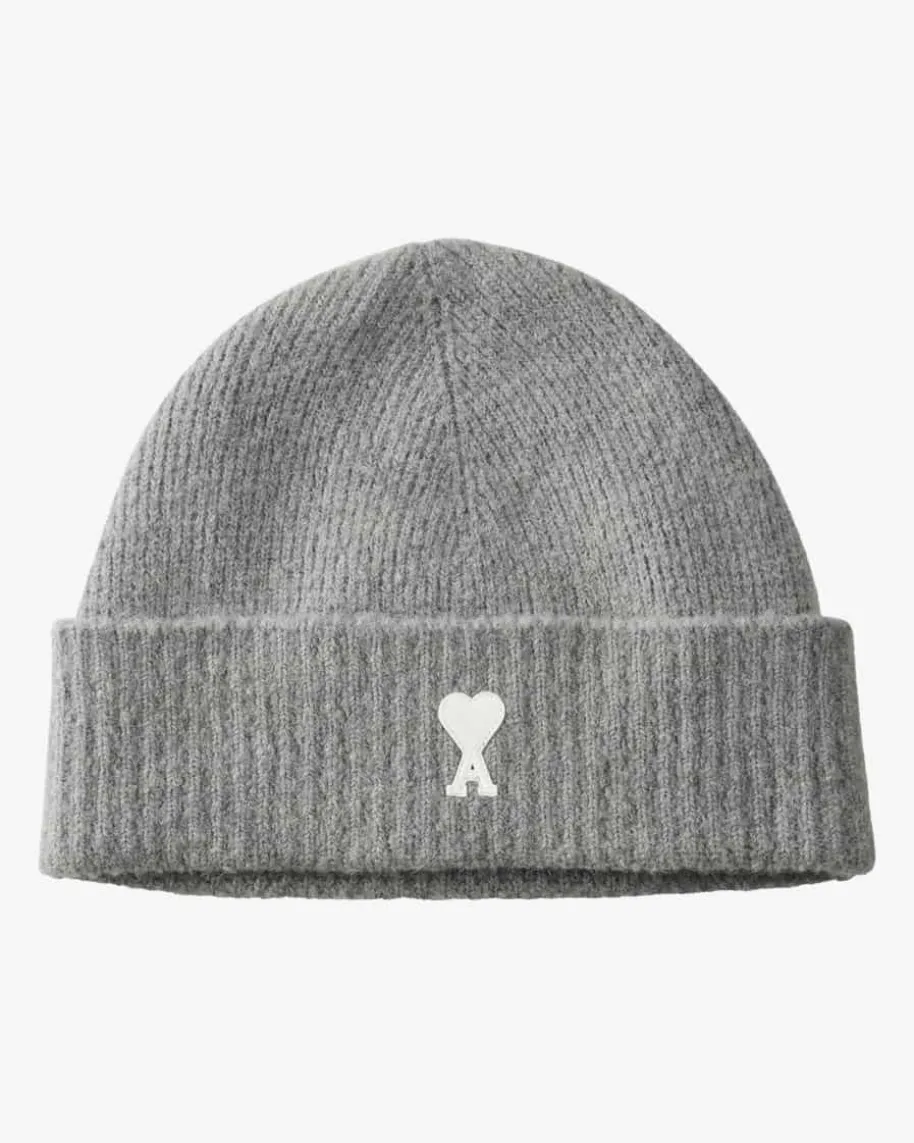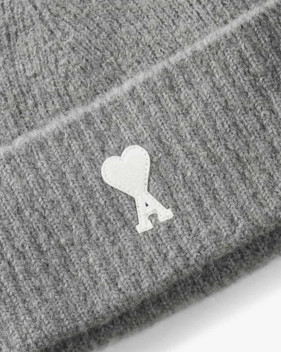 Strickmütze für Herren von Ami Paris in Hellgrau. Dank hochwertigem Woll-Mix mitAlpaka-Anteil und modernem Rippstrick-Design avanciert das Modell zu einemweichem Basic mit Stil. Die labeltypische, herzförmige Logo-Applikation rundetden Look charakteristisch ab.