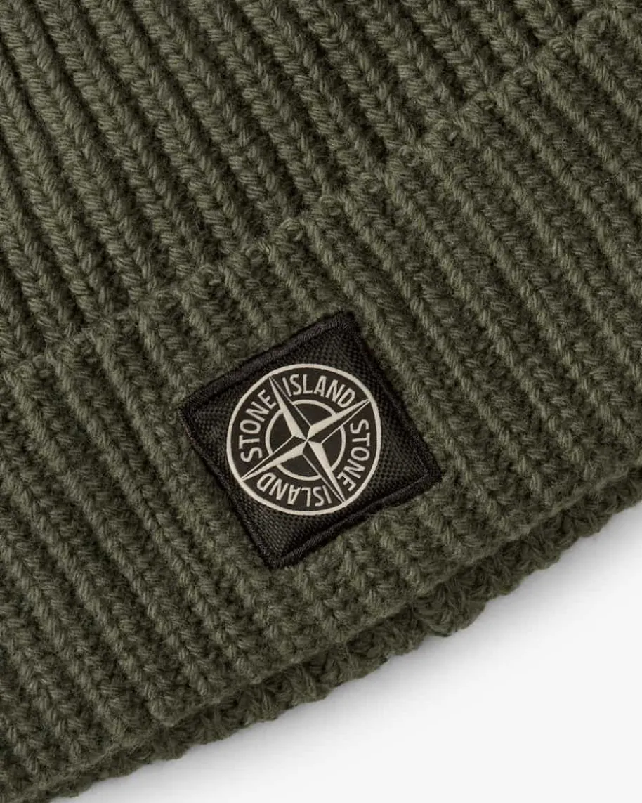 Mütze für Herren von Stone Island in Oliv. Das Modell in angenehmer Schurwoll-Qualität avanciert durch sein zeitloses Design in Rippstrick-Aufmachung zumwarmen Casual-Begleiter. Die labeltypische Logo-Applikation setzt zudem sportiveAkzente.
