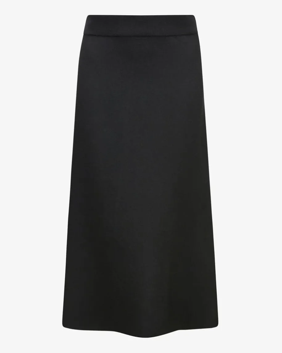 Strickrock für Damen von Dorothee Schumacher in Schwarz. Feminine Power ausDeutschland – Dorothees Looks verbinden Stärke mit verspielter Eleganz. Auchdieses Strick-Modell präsentiert sich mit ausgestellter Silhouette undelastischem Bund, während der weiche Schurwoll-Mix angenehme Tragemomentegarantiert – Ein zeitloser Look mit femininer Note.