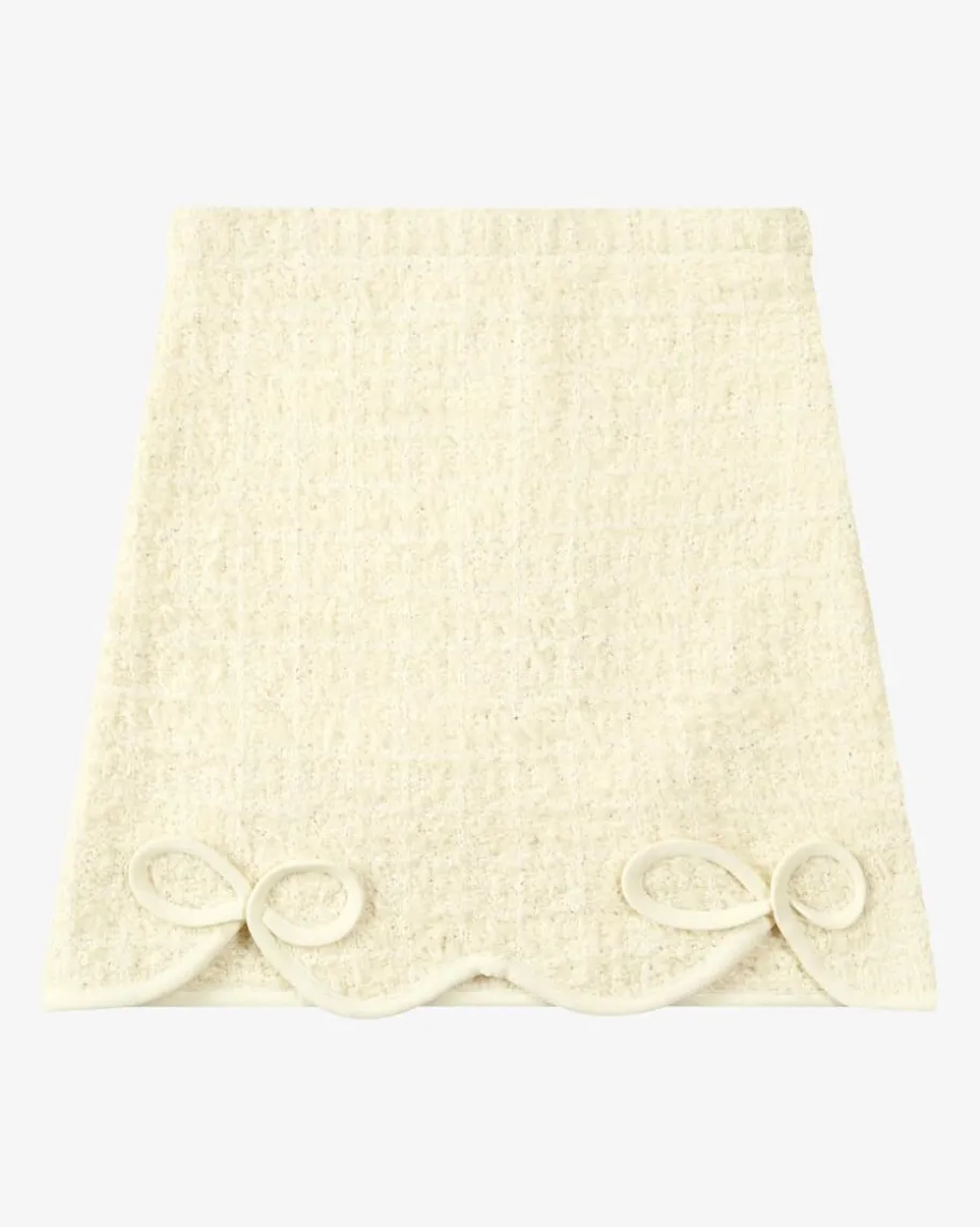 Strickrock für Mädchen von Self-Portrait Kids in Creme und Weiß. Das Modell inherziger Aufmachung überzeugt durch das elegante Bouclé-Strickdesign und demrunden Saum mit eingearbeiteten Schleifen-Details mit festlichem Charme, welchenzarte Pailletten-Applikationen gekonnt unterstreichen. Für einen niedlichenGesamt-Look kann Ihr Kleines die passende Jacke kombinieren.