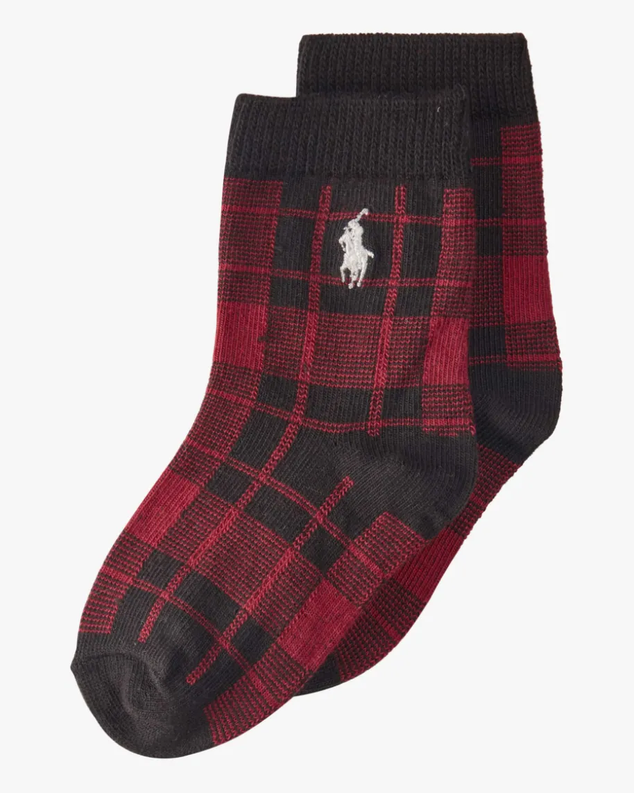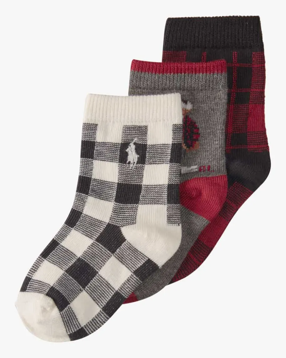 Strumpf-Set für Babys von Polo Ralph Lauren in Rot, Schwarz und Creme. Das Setpräsentiert sich dank verschiedener Designs in niedlicher Aufmachung, währendRippstrick-Details sowie Logo-Stickereien den letzten Schliff verleihen.