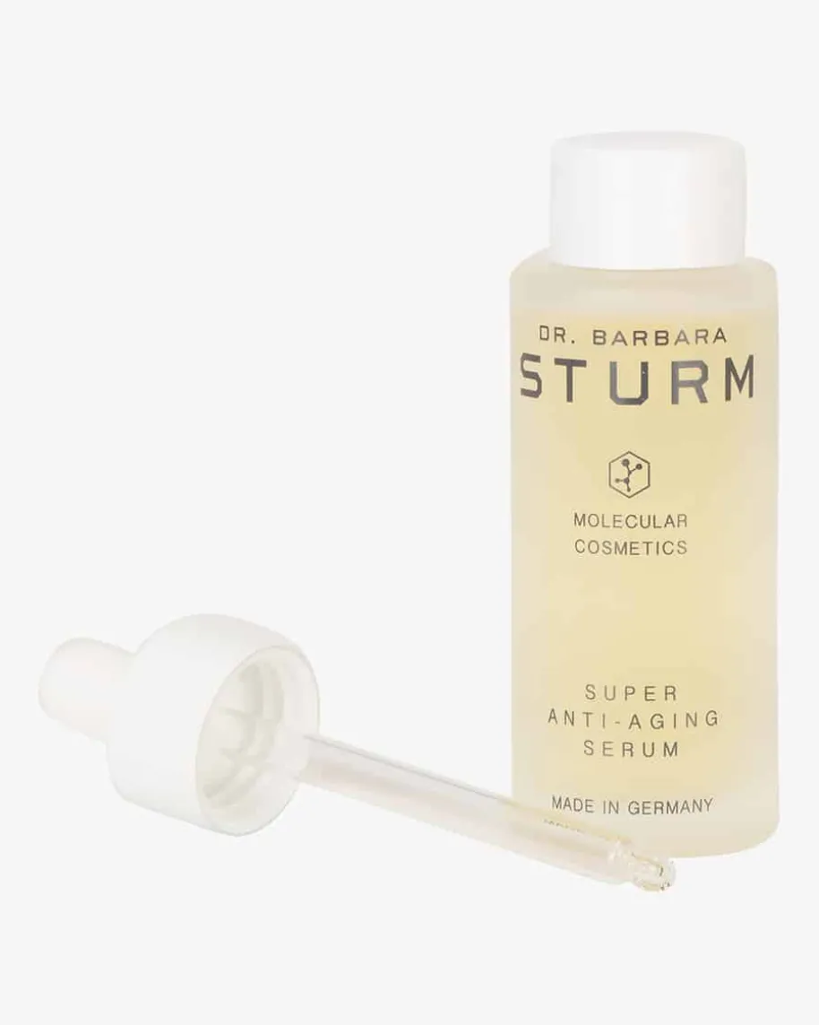 Super Anti-Aging Serum 30ml für Damen von Dr. Barbara Sturm.Dieses Konzentratmit hochwirksamen Antioxidanzien ist ein wahrerNährstoffcocktail für die Haut.Das Super Anti-Aging Serum lässt die Haut vitaler, glatterund straffererscheinen. Spezialextrakte aus Purslane, Skullcap und diehochkonzentriertenantioxidativen Inhaltsstoffe mindern Entzündungen in derHaut – dieHauptfaktoren für Hautalterung – und stärken dieregenerative Kraft der Zellen.Zusätzlich enthält das Serum eine Mischung kurzer undlangkettigerHyaluronmoleküle, die feinen Gesichtslinien und Faltenentgegenwirken und derHaut unverzüglich ein strahlend frisches Aussehen schenken.Die Kraft derWirkstoffe beugt insbesondere solchen Falten vor, die durchfreie Radikale sowiedurch die täglichen Umweltstressoren entstehen und wirktbereits entstandenenHautschäden entgegen, indem sie die nachlassendenReparaturmechanismen eineralternden Haut fördern. Dieses Serum entfaltet seinenerstaunlichen Effekt beiregelmäßiger Anwendung über mehrere Wochen. Sie werdenbemerken, dassUmregelmäßigkeiten reduziert werden und die Haut zudemstraffer ist. SchenkenSie dem Serum Geduld und Ihrer Haut diese liebevolle Pflege.