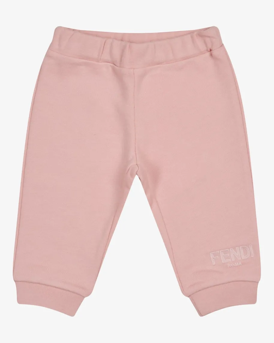 Sweathose für Babys von Fendi Kids in Rosa. Das Modell präsentiert sich inschlichter Aufmachung und hochwertiger Baumwoll-Qualität, welche dankklassischer Details und tonalem Logo-Stick harmonisch abgerundet wird.