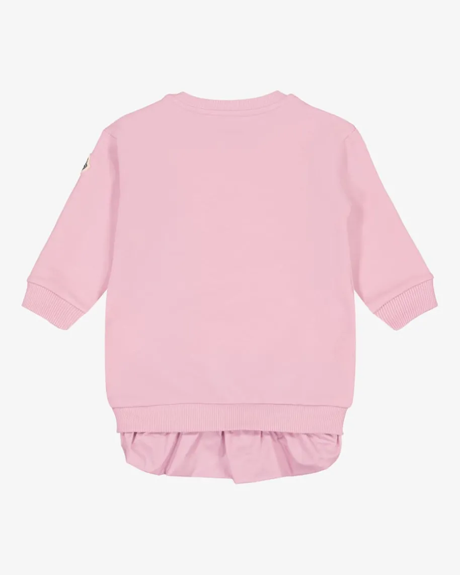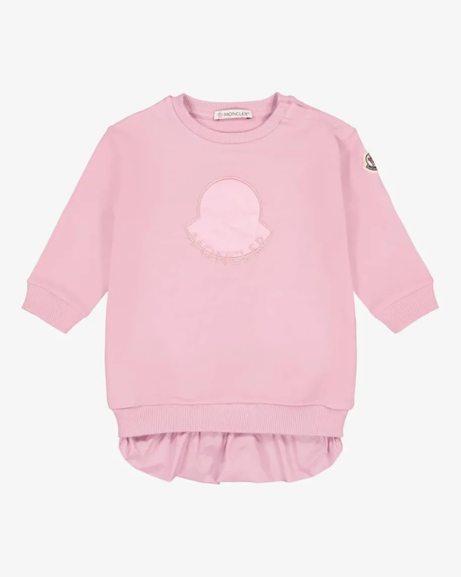 Sweatkleid für Babys von Moncler Enfant in Rosa. Das Modell überzeugt dankangenehmer Baumwoll-Qualität sowie extra weicher Innenseite mit hohemTragekomfort, während die verlängerte Rückseite in changierender Qualität sowiedie labeltypische Plakette am Ärmel das Gesamtbild modisch vollenden.