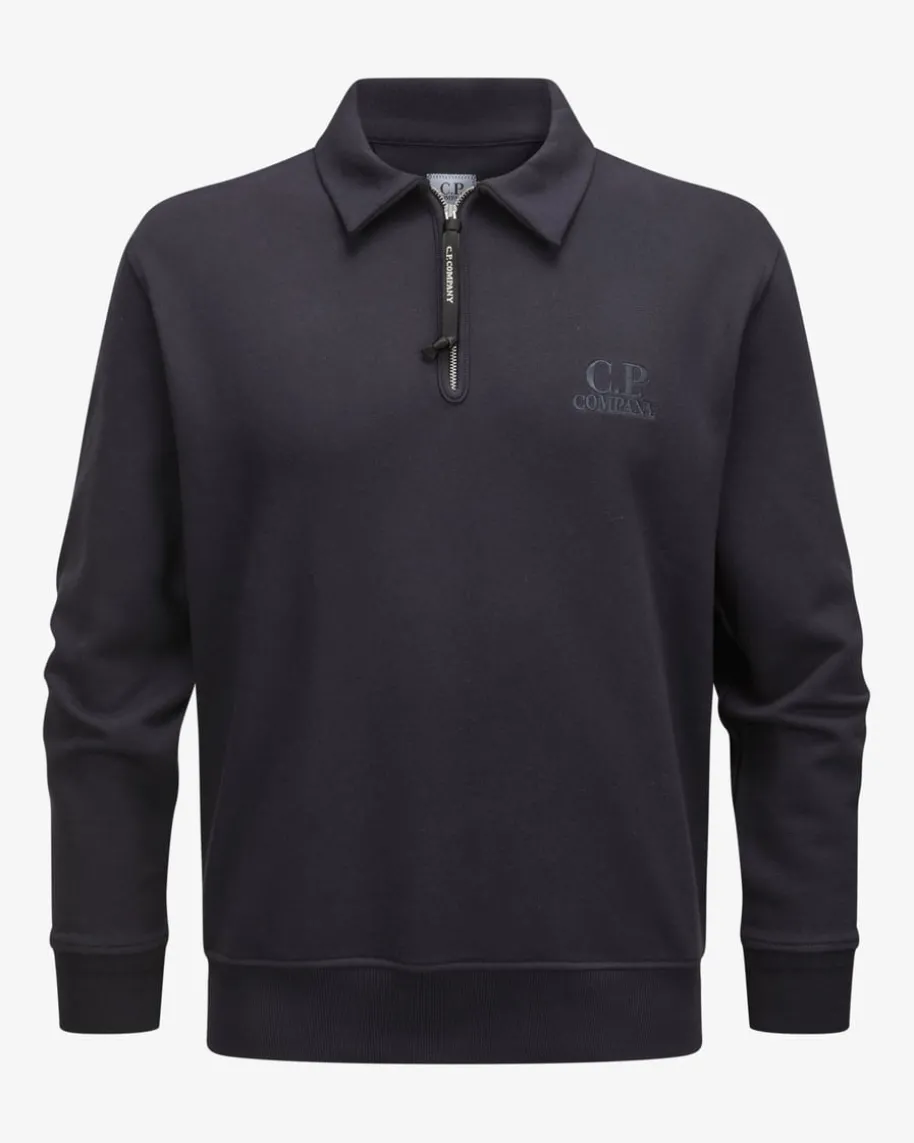 Sweatshirt für Herren von C.P. Company in Nachtblau. Das Modell aus softerBaumwolle punktet dank der sportiven Polo-Aufmachung in legerem Look, welcherdurch die tonige Logo-Stickerei labeltypisch in Szene gesetzt wird.