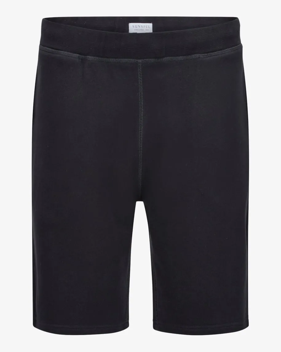 Sweatshorts für Herren von Sunspel in Schwarz. Dank softer Q40 Loopback-Baumwolle sowie elastischem Bund garantiert dieses Modell besonders angenehmeTragemomente, während die legere Aufmachung eine Neuinterpretation derSportswear-Ästhetik der 1950er-Jahre verkörpert.