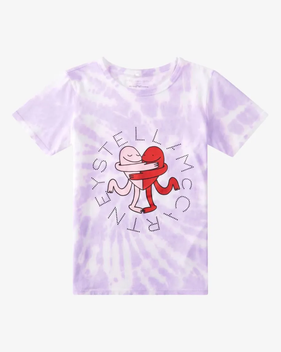 T-Shirt für Mädchen von Stella McCartney Kids in Flieder, Rot und Weiß. StellaMcCartney Kids steht für fröhliche und langlebige Kindermode, die unterethischen und ökologischen Gesichtspunkten hergestellt wird. Das liebevollgestaltete Modell aus nachhaltigem Baumwoll-Jersey strahlt mit seinemsommerlichen Tie-Dye-Look und dem herzlichen Logo-Print pure Fröhlichkeit aus.Die umarmenden Herzen erzählen von Geborgenheit und Liebe – ein bezaubernderBegleiter für einen unbeschwerte Sommer-Style.