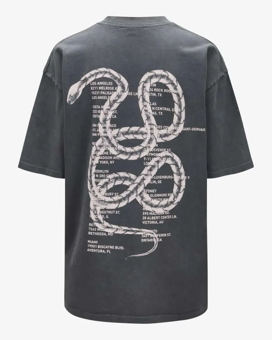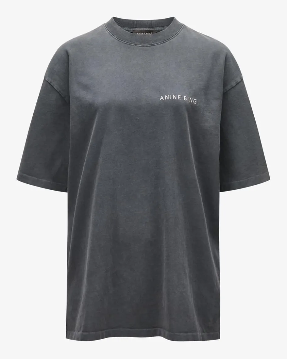 T-Shirt für Damen von Anine Bing in Anthrazit. Das Modell präsentiert sich inverwaschenem Dessin und angenehmer Haptik, während der großflächige Rücken-Printden Gesamtlook gekonnt ergänzt und zu einen lässigen Style avanciert.