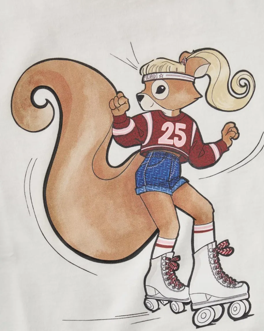 T-Shirt für Mädchen von Fendi Kids in Weiß und Bunt. Das Modell in hochwertigerBaumwoll-Qualität überzeugt mit angenehmen Tragemomenten, während der niedlicheEichhörnchen-Skate-Print den Gesamtlook harmonisch vollendet.