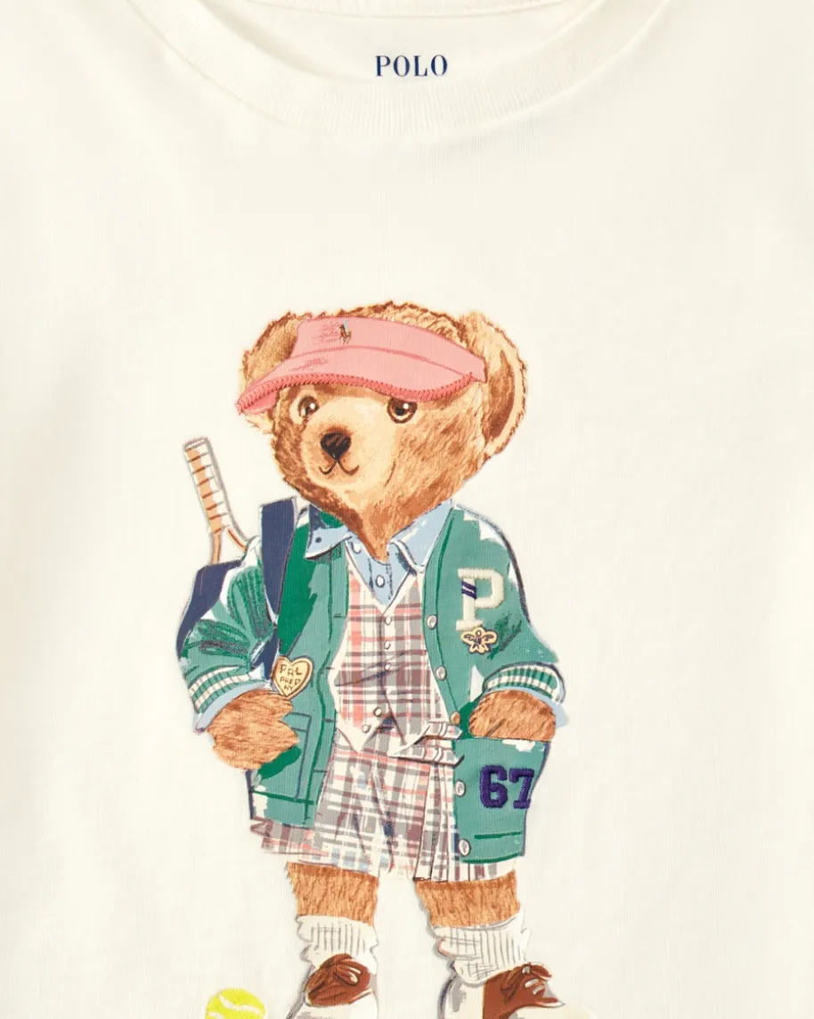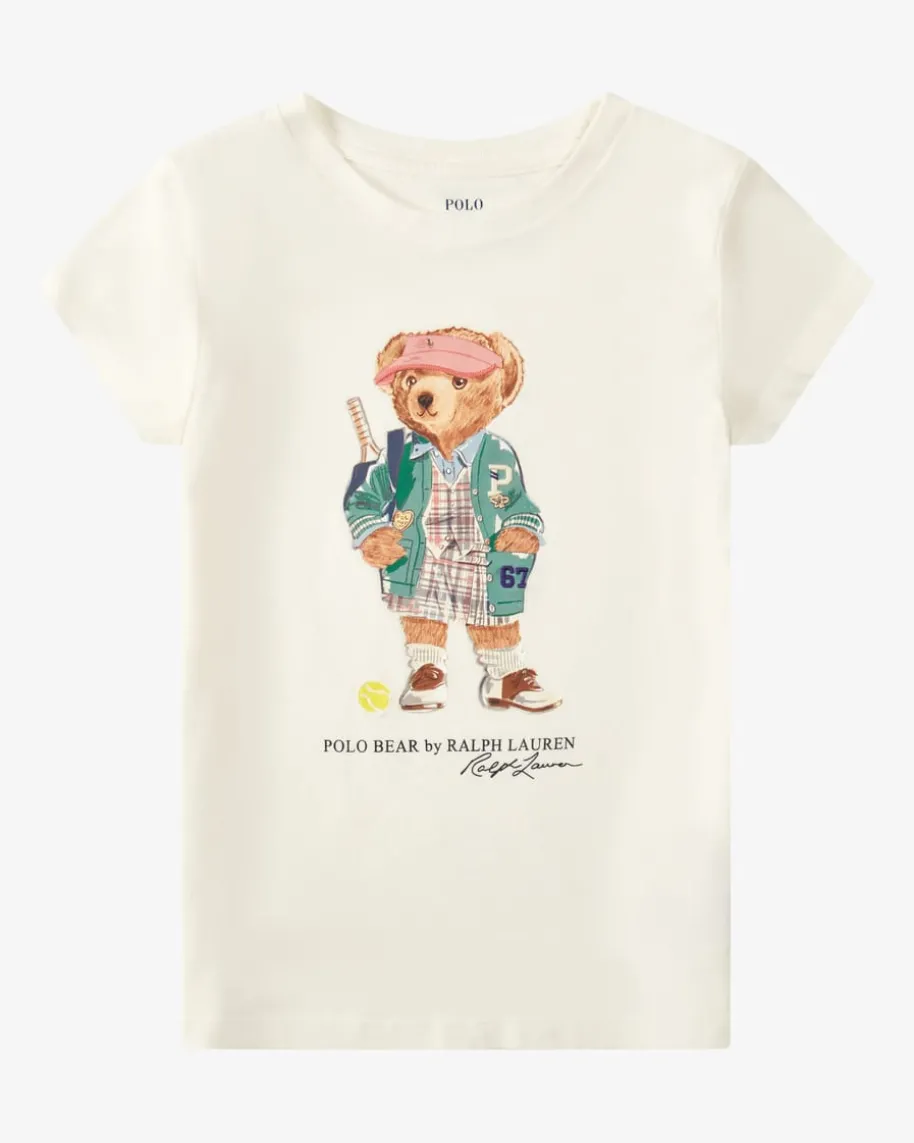 T-Shirt für Mädchen von Polo Ralph Lauren in Weiß und Bunt. Das Modell überzeugtmit leichtem Baumwoll-Material und sorgt für angenehmen Tragekomfort, währendder niedliche Polobär-Print im sportiven Tennis-Look einen besonderen Hinguckerkreiert.