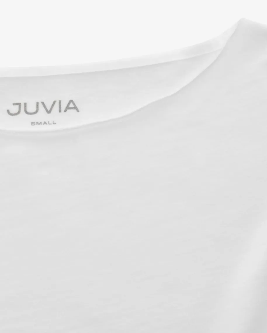 T-Shirt für Damen von Juvia in Weiß. Das legere Modell ausweicher Sweat-Qualität begeistert mit überschnittenenSchultern undlockerer Passform. Einbequemer Casual-Begleiter für modische Auftritte.