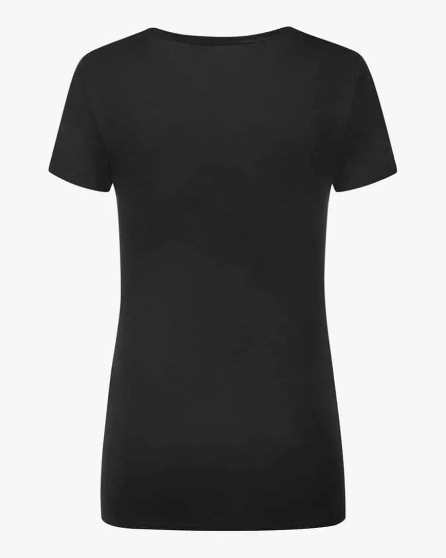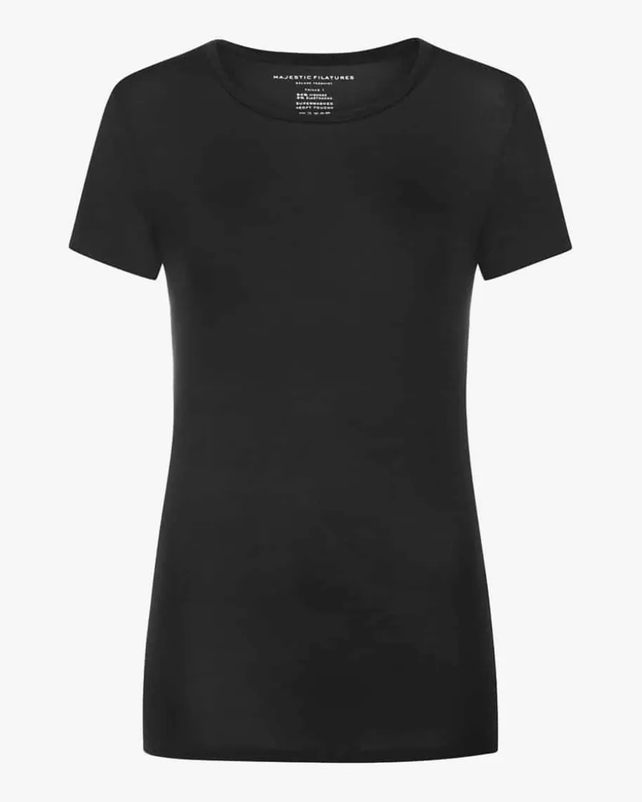 T-Shirt für Damen von Majestic Filatures in Schwarz. Ein perfektes Basic – Dasleicht taillierte Modell überzeugt dank dem elastischen Material-Mix und derweichen Soft-Touch-Qualität mit hohem Tragekomfort.