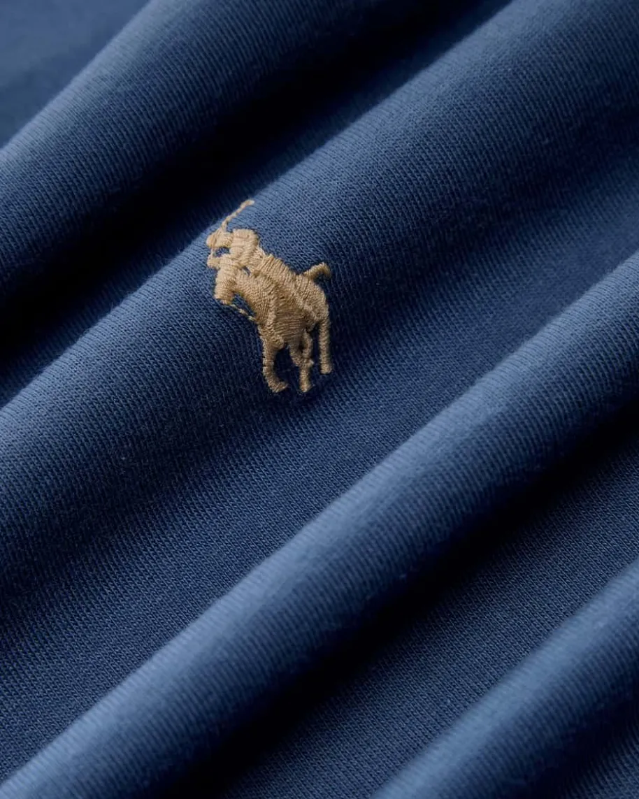 T-Shirt Custom Slim Fit für Herren von Polo Ralph Lauren in Dunkelblau. Mitschmalem Schnitt und aus hochwertiger Baumwolle gefertigt, präsentiert sich dasModell in modisch legerer Aufmachung. Der Rundhals-Ausschnitt setzt einenklassischen Akzent, während die charakteristische Logo-Stickerei auf der Brustdas Gesamtbild gekonnt abrundet.