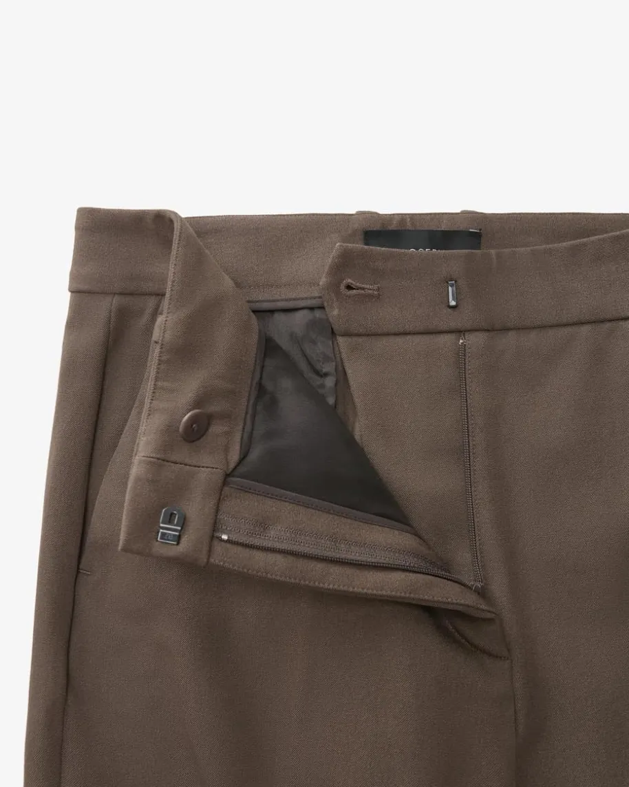 Tafira Hose für Damen von Joseph in Taupe. Das Modell präsentiert sich mitausgestelltem Bein und hohem Bund, während die elastische, aber robusteGabardine-Qualität für hohen Tragekomfort sorgt – Ein eleganter Style fürfeminine Power-Looks.
