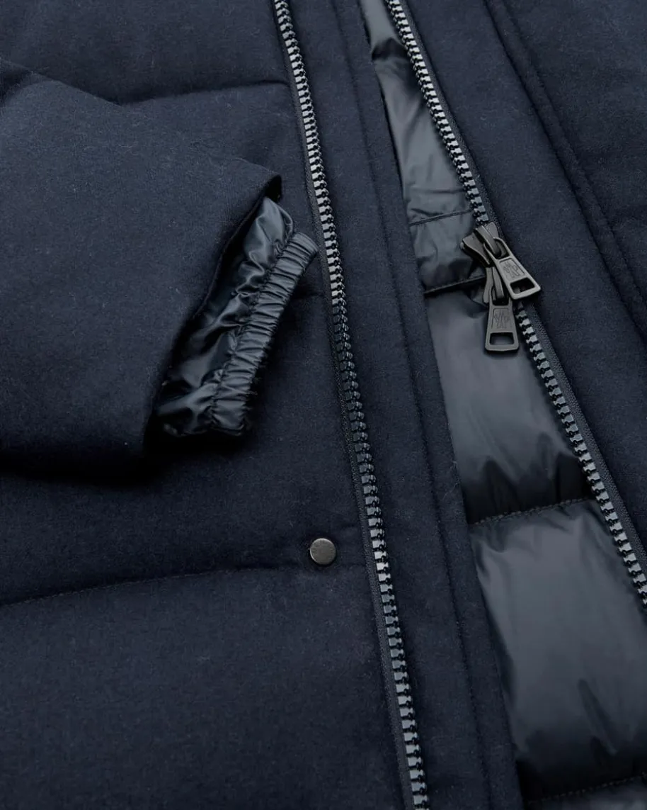 Talamini Daunenjacke für Herren von Moncler in Navy. Denkt man an hochwertige,warme Daunenjacken, kommt einem unweigerlich das italienische TraditionslabelMoncler in den Sinn. Auch diese voluminöse Jacke überzeugt mit seinerhochwertigen Daunen-Feder-Füllung, während das matte Stepp-Design zusammen mitpraktischen Details einen zeitlosen Winter-Begleiter kreiert.