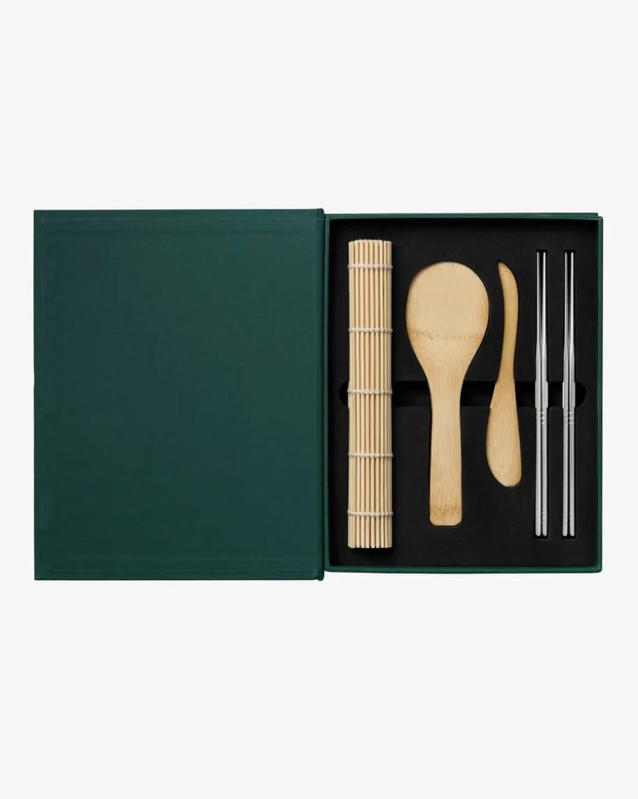 The Essential Sushi Tools Sushizubehör von Printworks inDunkelgrün. Geschicktgetarnt als buchähnliche Box, gefüllt mit allen Utensiliendie sie für dasperfekte und selbst gemachte Sushi brauchen. Der nächstekulinarische Ausflugnach Japan kann somit erfolgen.