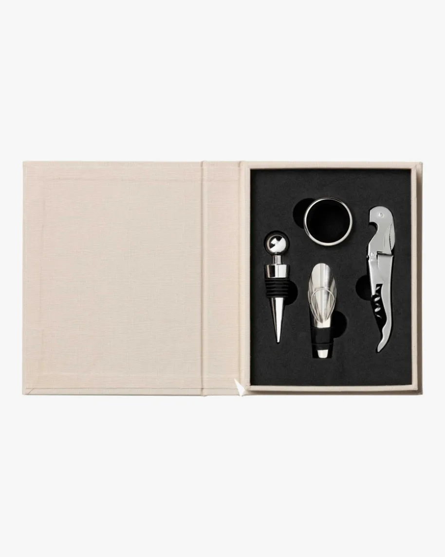 The Essentials Wein Werkzeug Set von Printworks in Beige,Bordeaux und Silber.Entdecken Sie das unverzichtbare Set zur PerfektionierungIhres Weinerlebnisses– ein raffinierter Werkzeugkasten in einer eleganten,buchähnlichen Box, der dasperfekte Geschenk darstellt. Alle Produkte sind zudem aushochwertigem Edelstahlgefertigt und spülmaschinenfest.