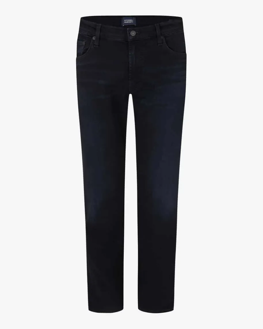 The London Slim Taper Regular Rise Jeans für Herren von Citizens of Humanity inNavy/ Undertow.Das Modelldes in Los Angeles gegründeten Labels präsentiert sich dank dezenter Waschungund tonalen Ziernähten in schlichter Aufmachung, wodurch ein vielseitigkombinierbarer Liebling für Ihre Casual-Garderobe geschaffen wird. Zugleichverspricht die elastische Material-Verarbeitung ein angenehmes Tragegefühl.