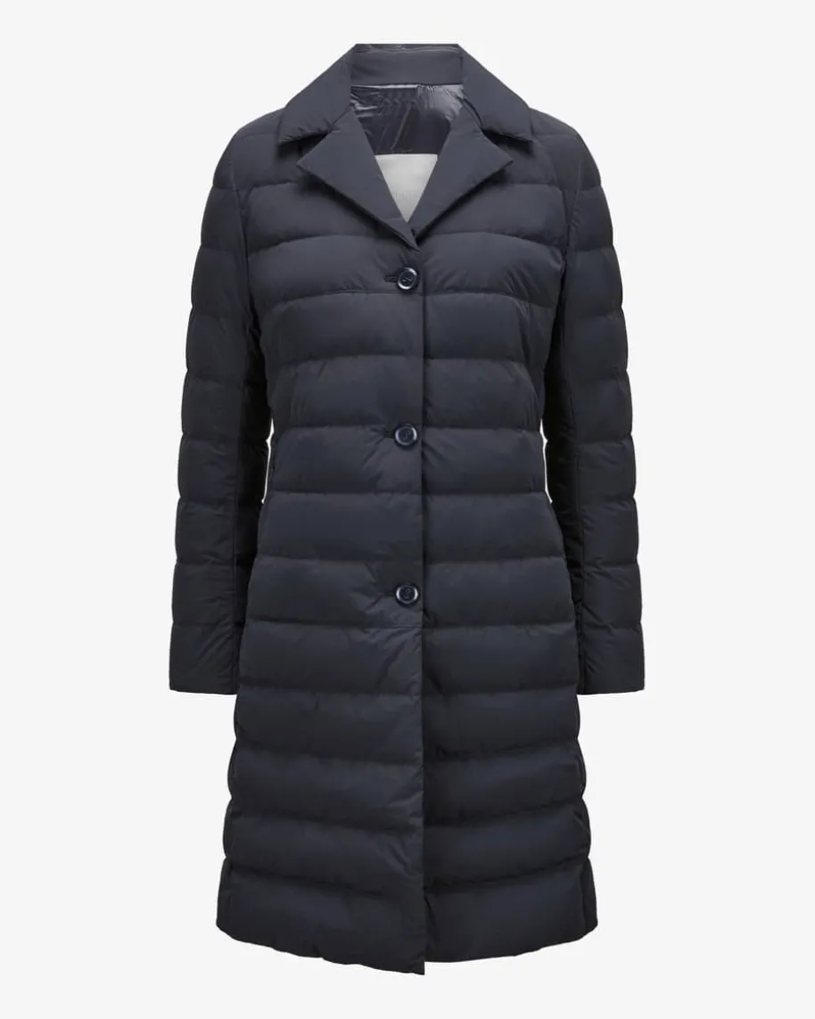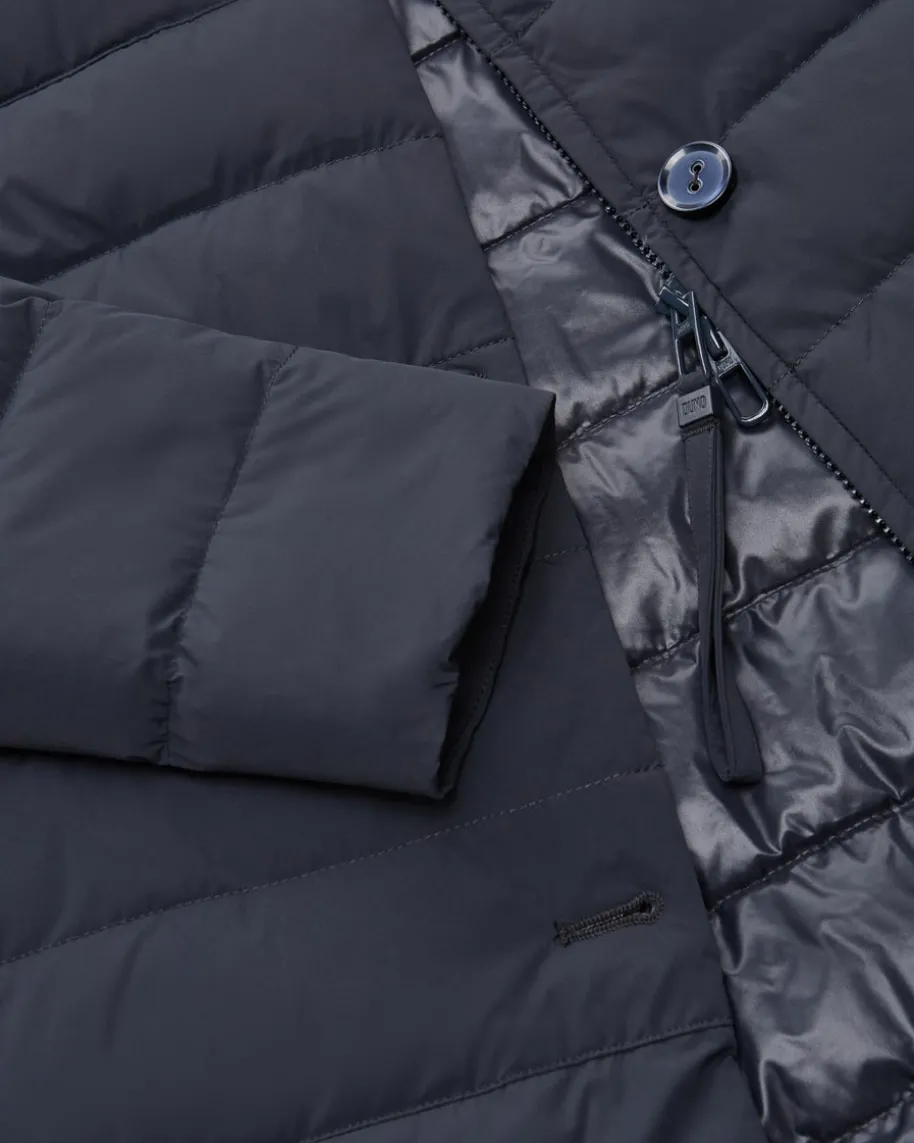 Tiara Licosa Daunenmantel für Damen von Duno in Navy. Technische Stoffe treffenauf minimalistisches Design – modische Performancejacken mit stilvollem City-Charakter. Dieses Modell überzeugt dank der leichten Daunen-Feder-Füllung sowieder wasserdichten und atmungsaktiven Eigenschaft als wetterfester Favorit,welcher durch die Blazer-Aufmachung einen eleganten Touch erhält.